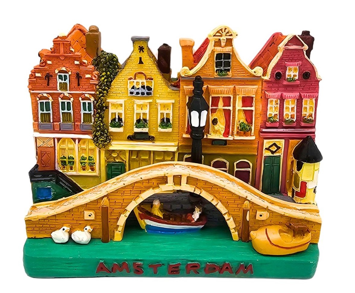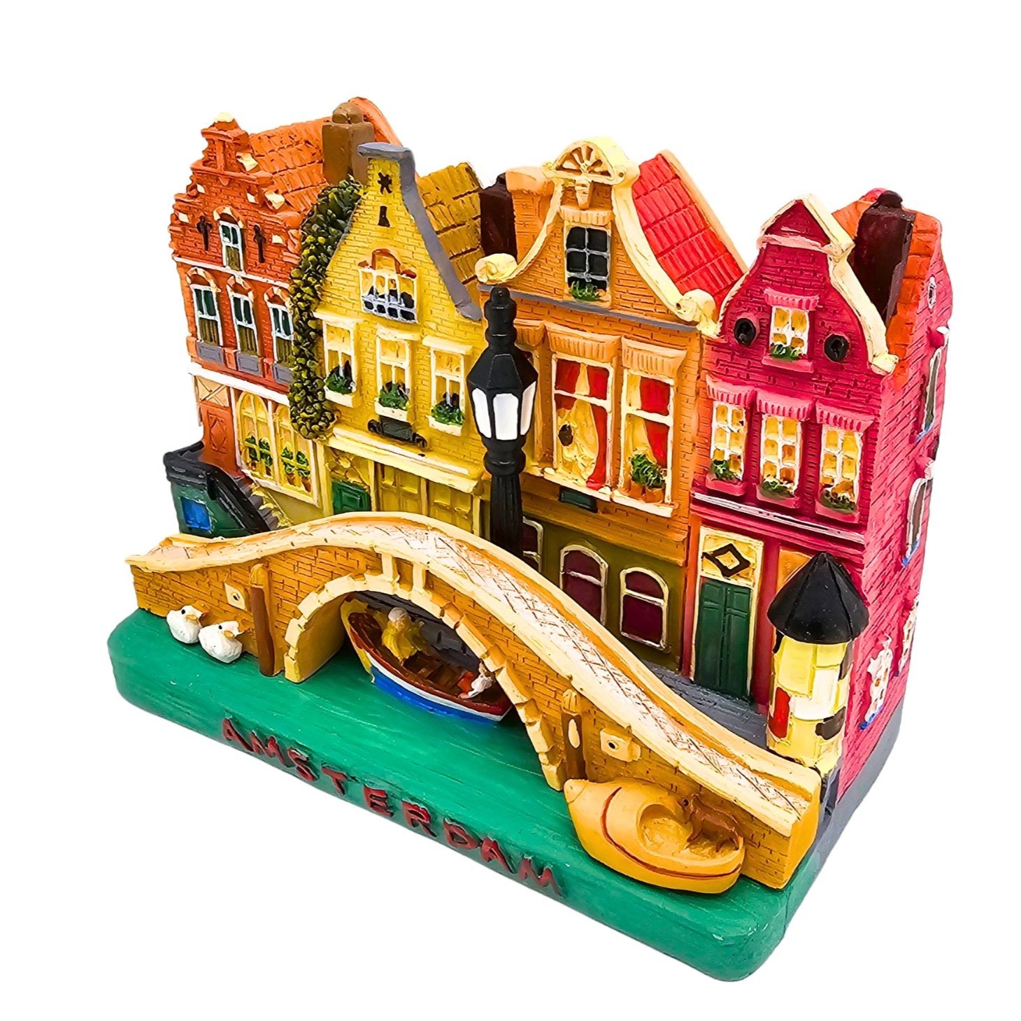 Amsterdamer Stadtszene. 4 Fassadenhäuser am Amsterdamer Kanal. Hergestellt aus Polystone. Maße: 7 x 16 x 8 cm. Lieferung in PVC-Geschenkbox