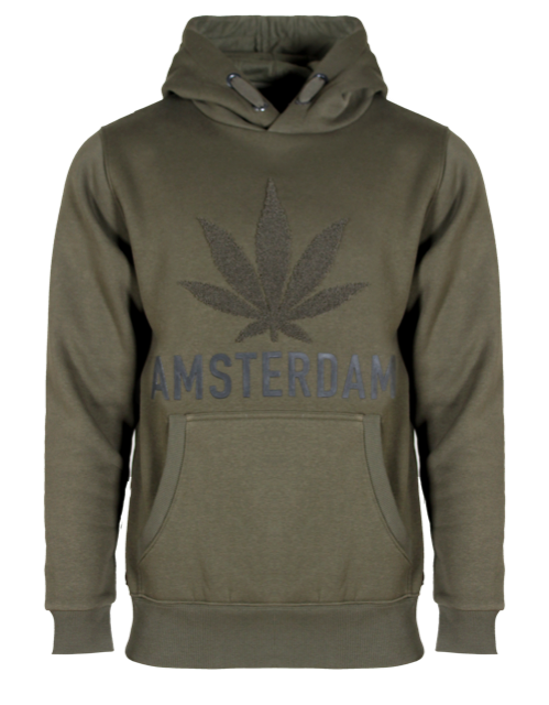 Weicher, armeegrüner Hoodie von höchster Qualität mit 3D-Cannabisblatt (greifbar)