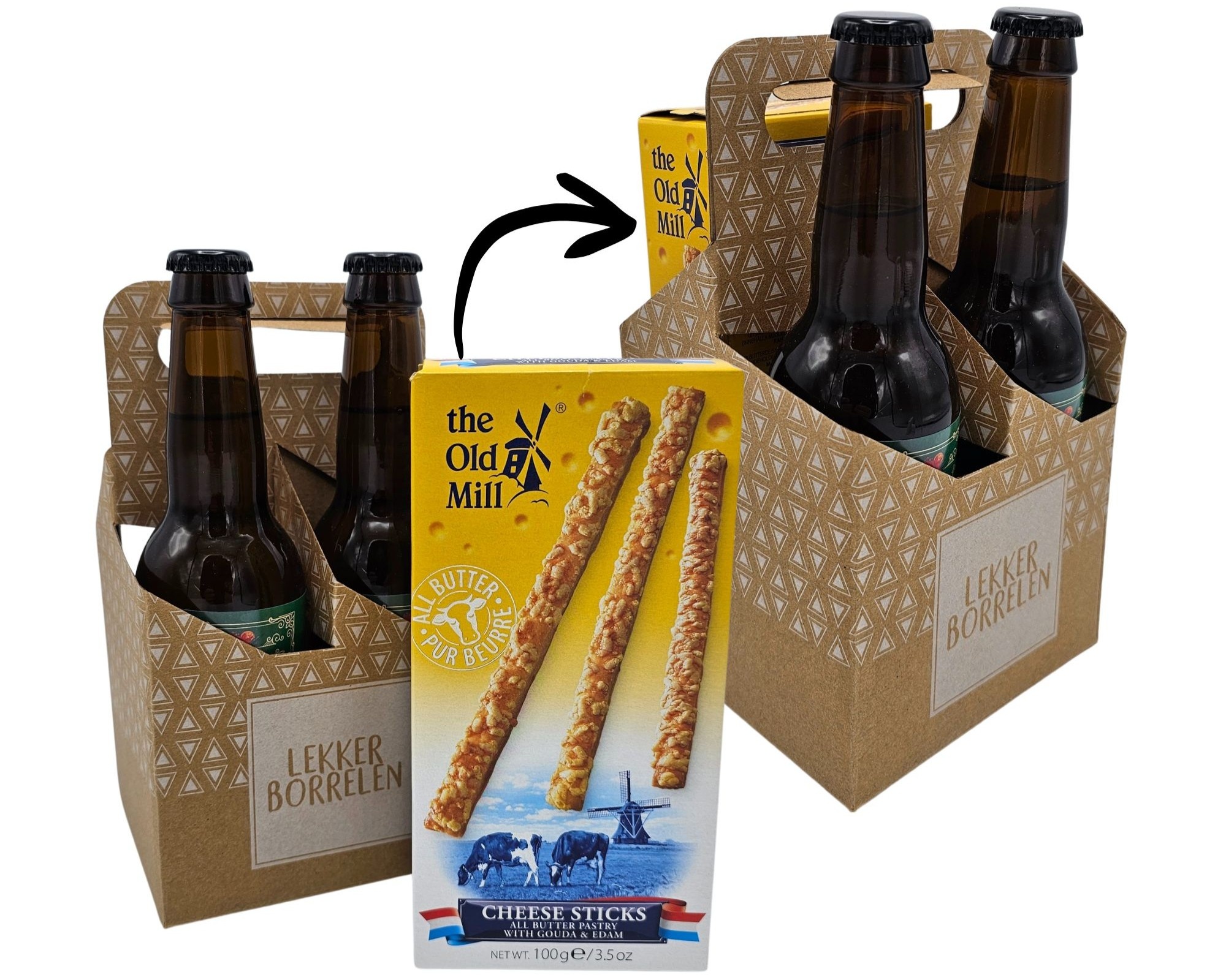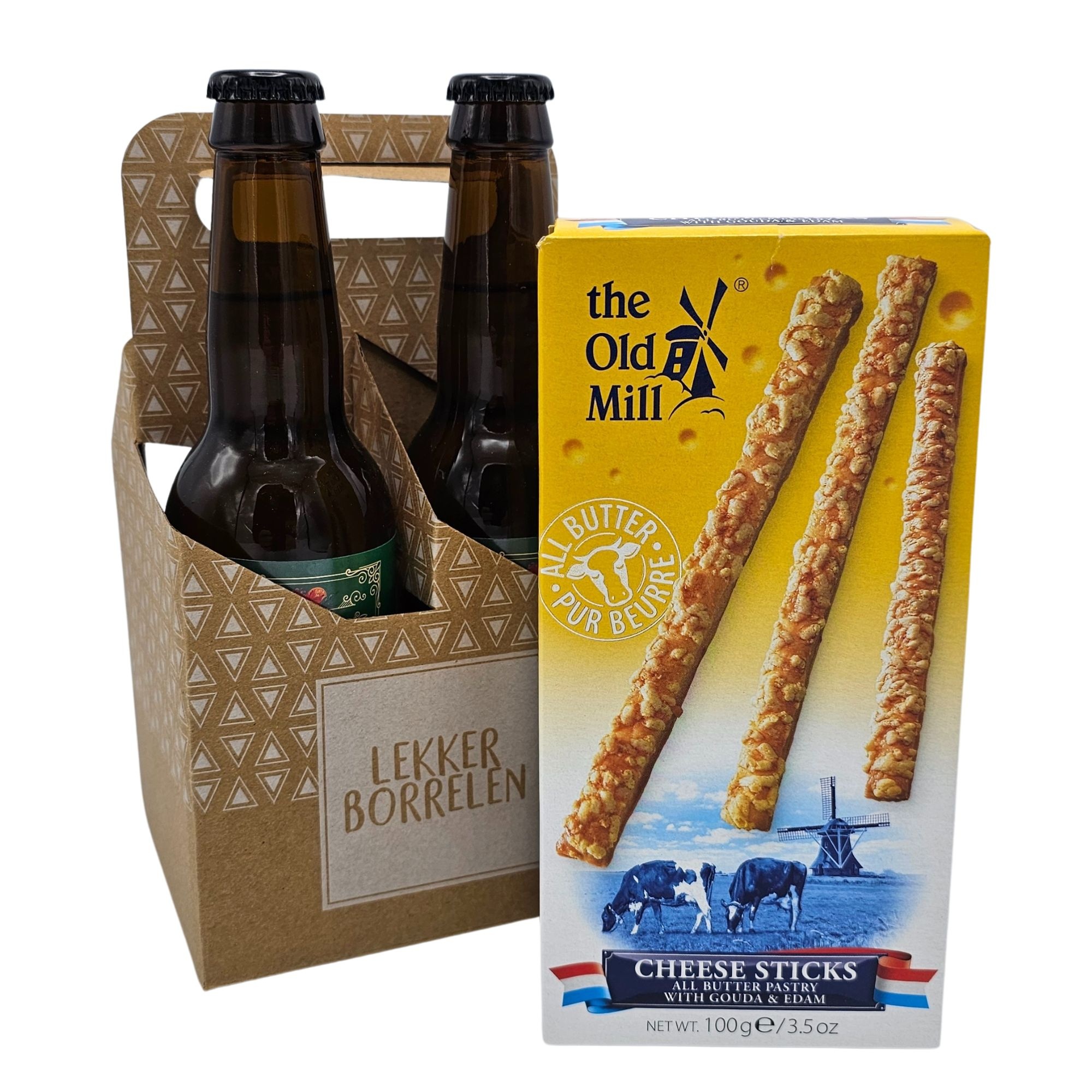 Bier- und Käsesticks im praktischen Tragekarton – ideal zum Verschenken im Urlaub oder einfach für einen gemütlichen Abend.
