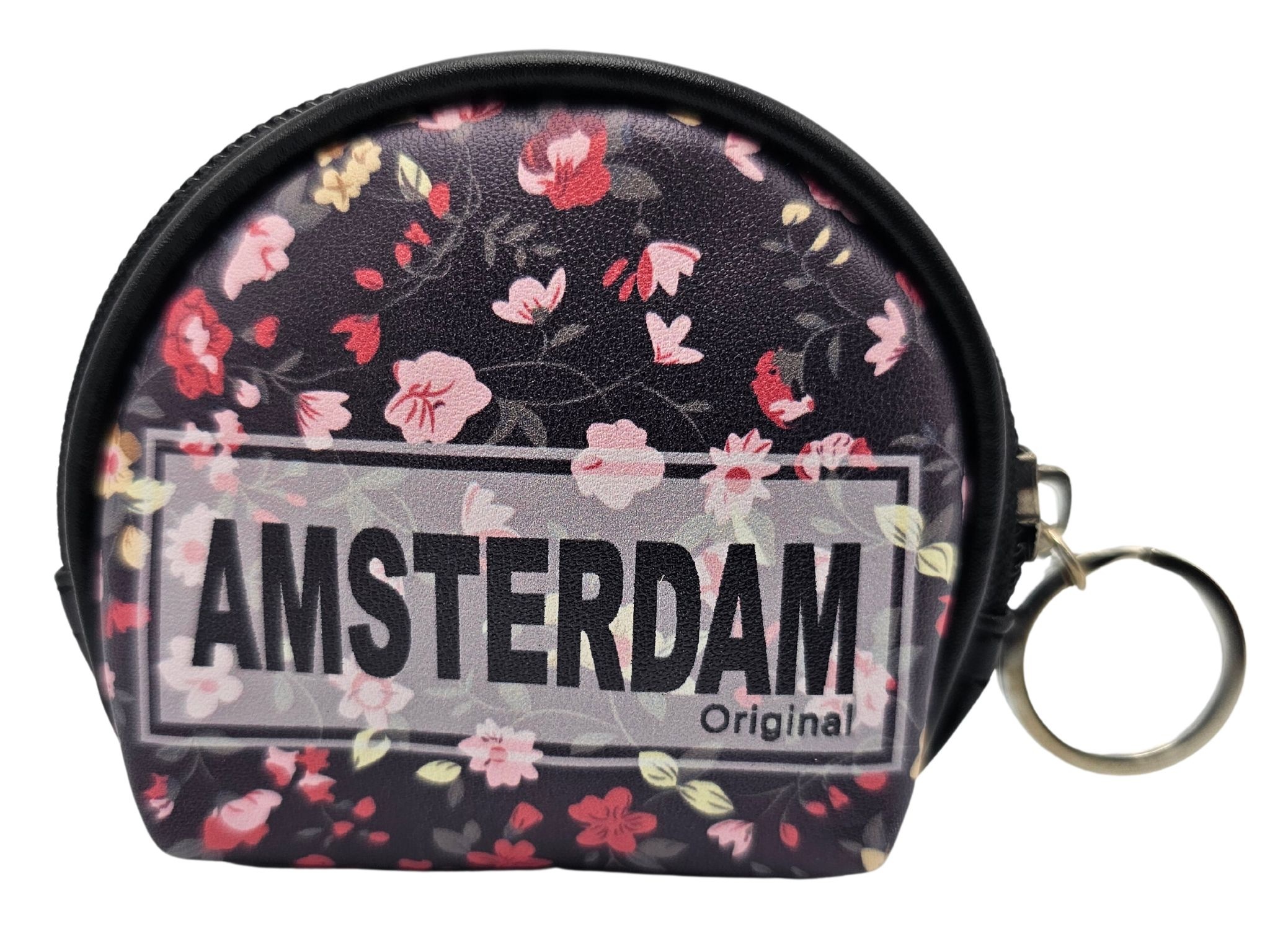 Geldbörse Amsterdam-Black-Flowers Halbrunde Robin Ruth Geldbörse. Maße 9 x 8 x 3,5 cm, abschließbar mit Reißverschluss (großer Ring)