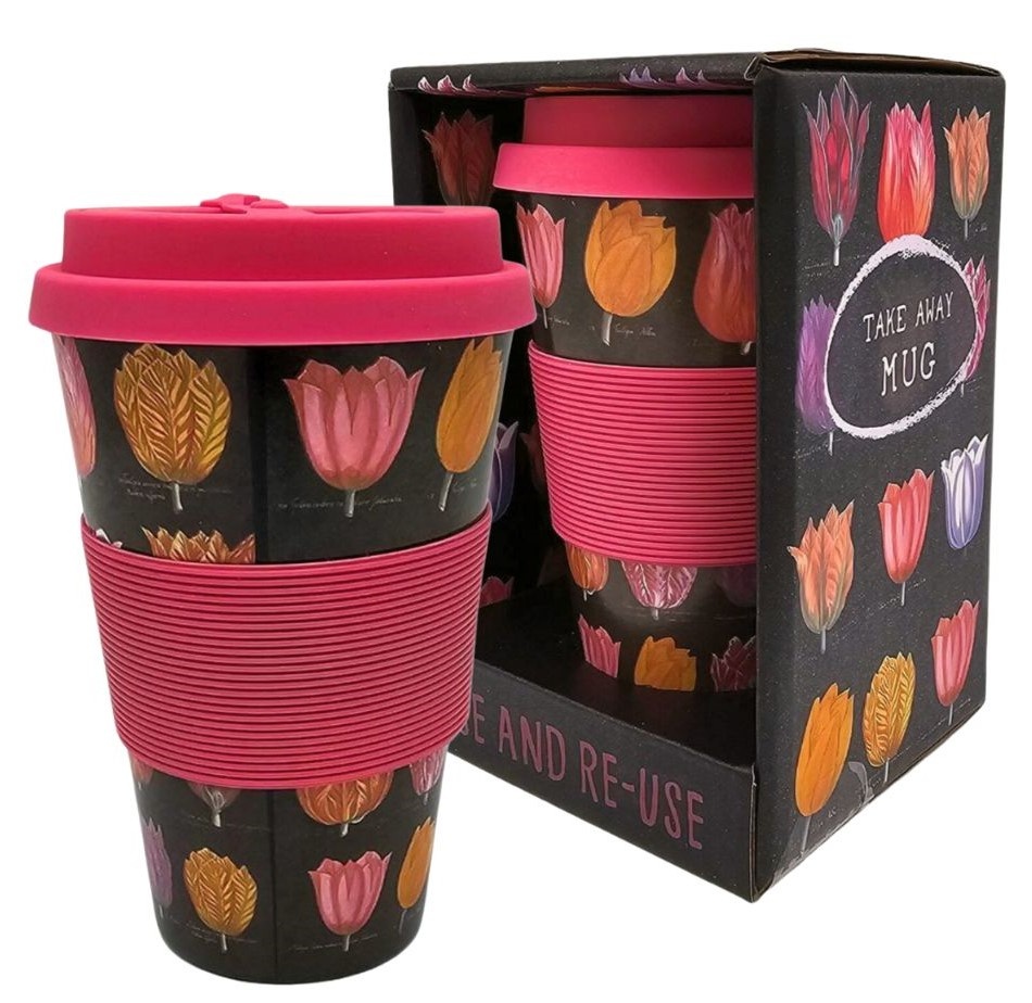 Eine coole Tasse mit Tulpendekor ist eine tolle Lösung.