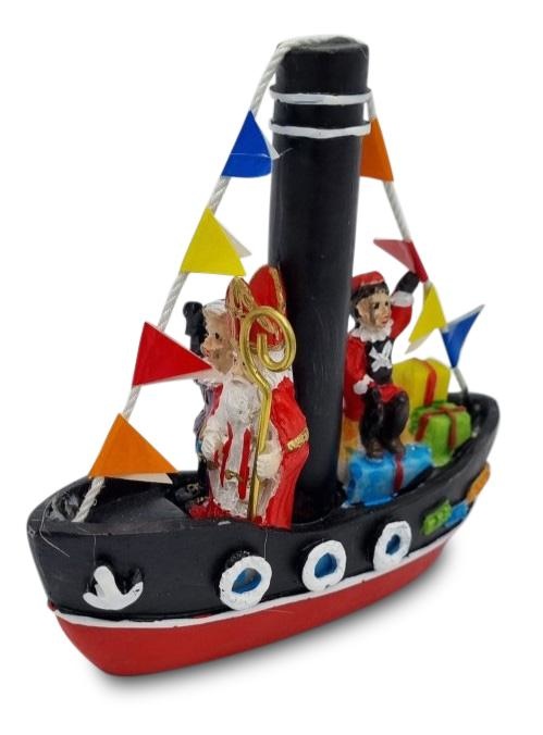 Das Boot von Sinterklaas ist fröhlich mit Fahnen geschmückt. An Bord natürlich Sinterklaas und seine Pieten.