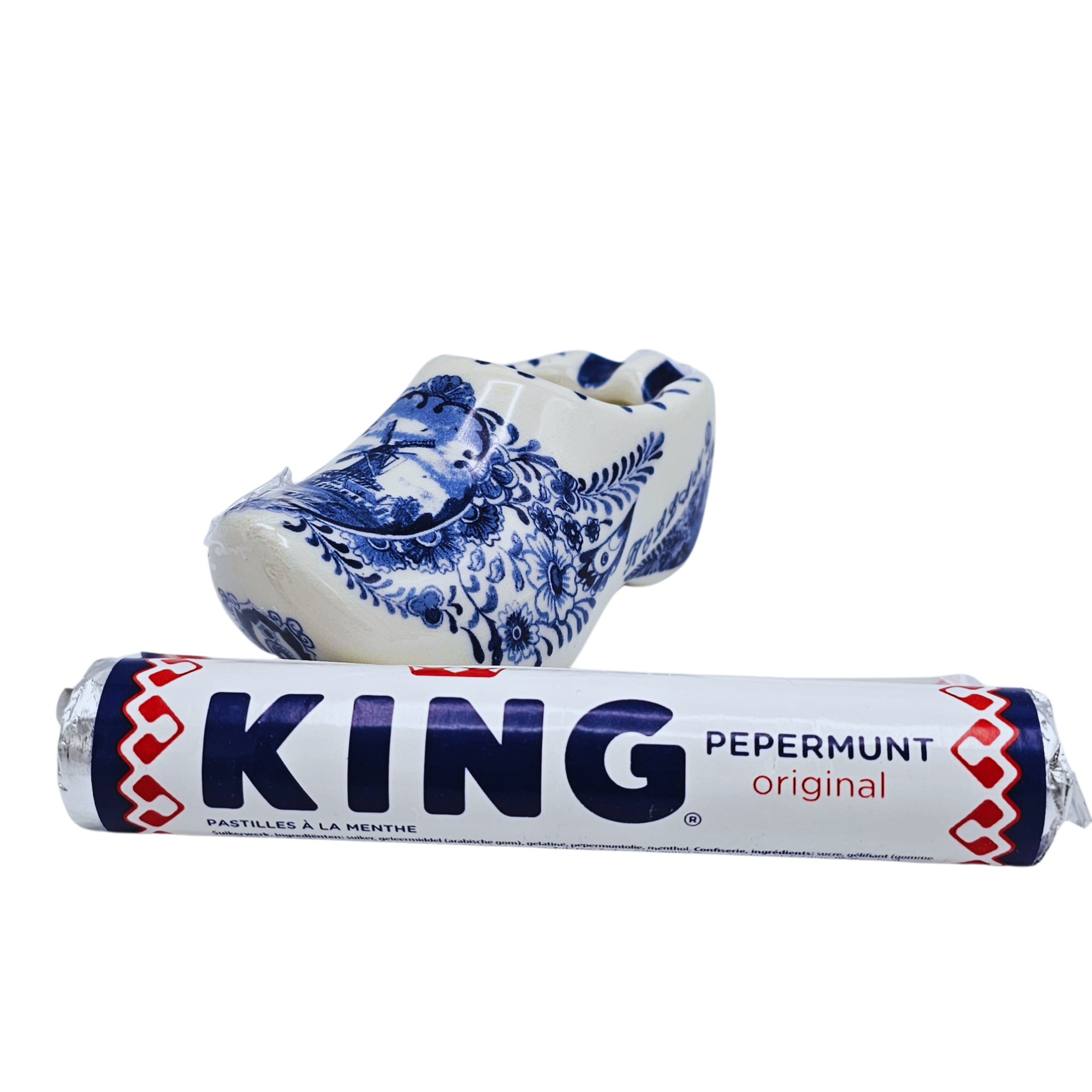 Im Inneren finden Sie die weltberühmte KING-Pfefferminze, die einzige hochwertige Pfefferminze aus den Niederlanden. Sind die Pfefferminzbonbons aufgebraucht, bleibt der Holzschuh als einzigartiges und dekoratives Erinnerungsstück zurück.