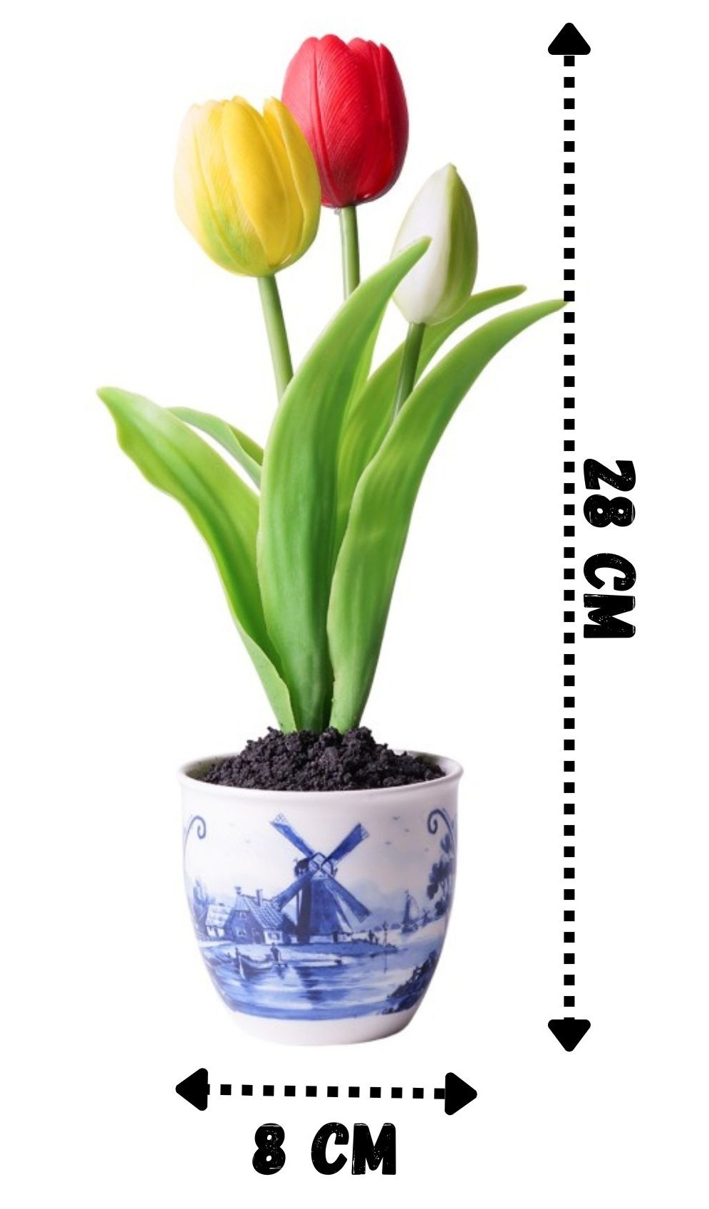 Möchten Sie Blumen per Post verschicken? Ja, das ist mit unserem schönen Blumentopf in Delfter Blau möglich. Diese Tulpenimitationen sind von echten Tulpen nicht zu unterscheiden. Auf diese Weise können Sie das ganze Jahr über Tulpen in Ihrem Zuhause geni