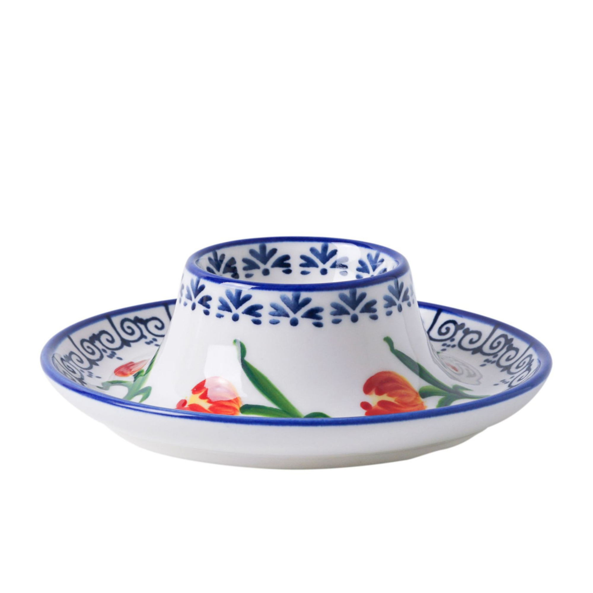 Eierbecher - Delfter Blau mit orangefarbenen Tulpen