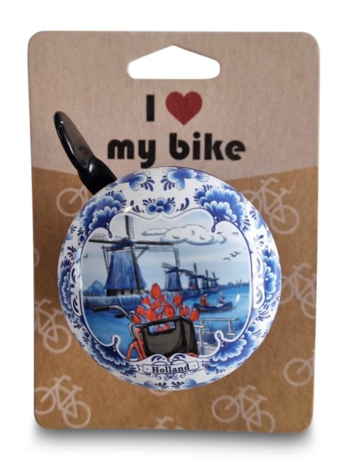 Fahrradklingel Holland Blau Fahrrad und Windmühlen 60mm