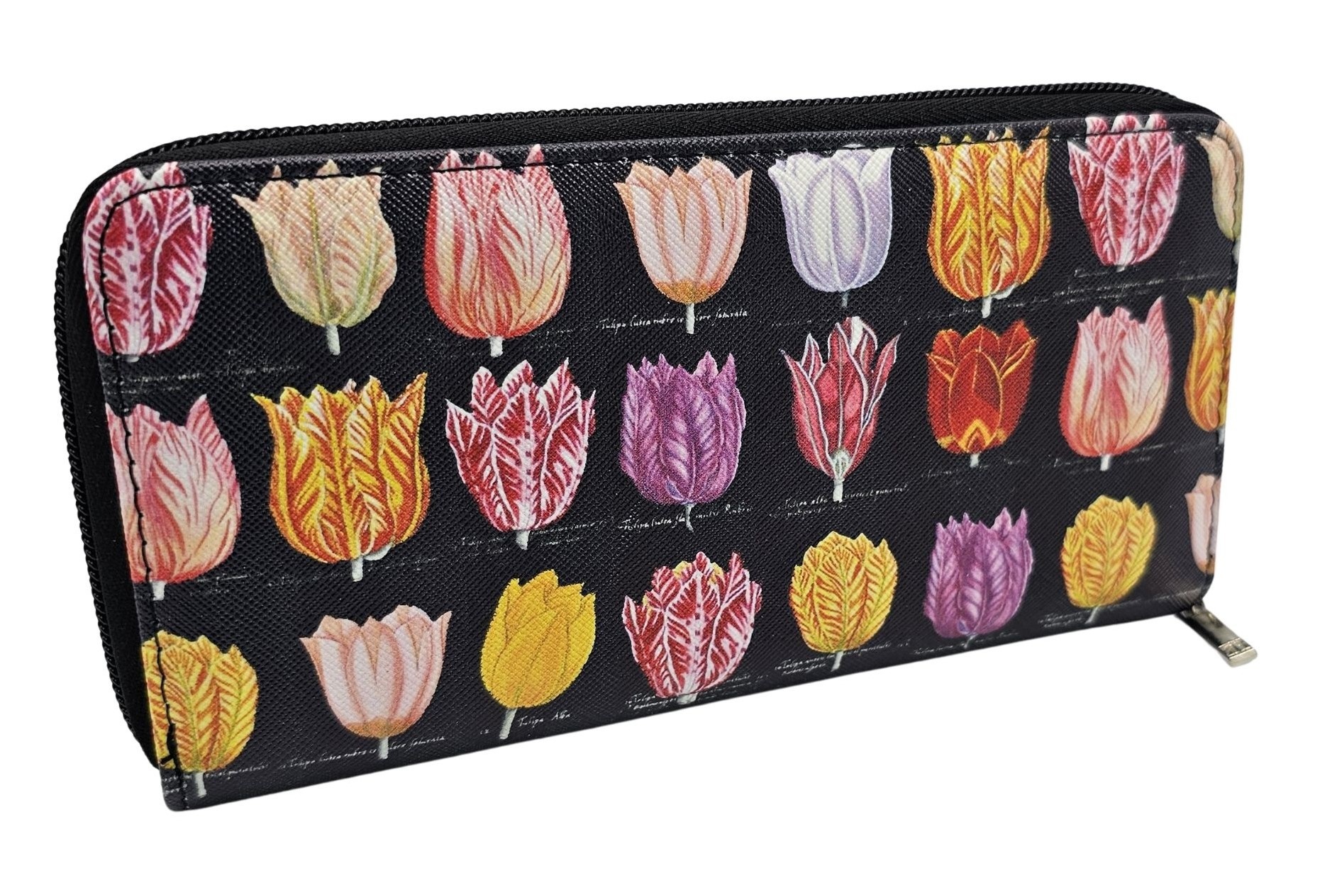 Geldbörse – Damen – Schwarz mit mehrfarbigen Tulpen