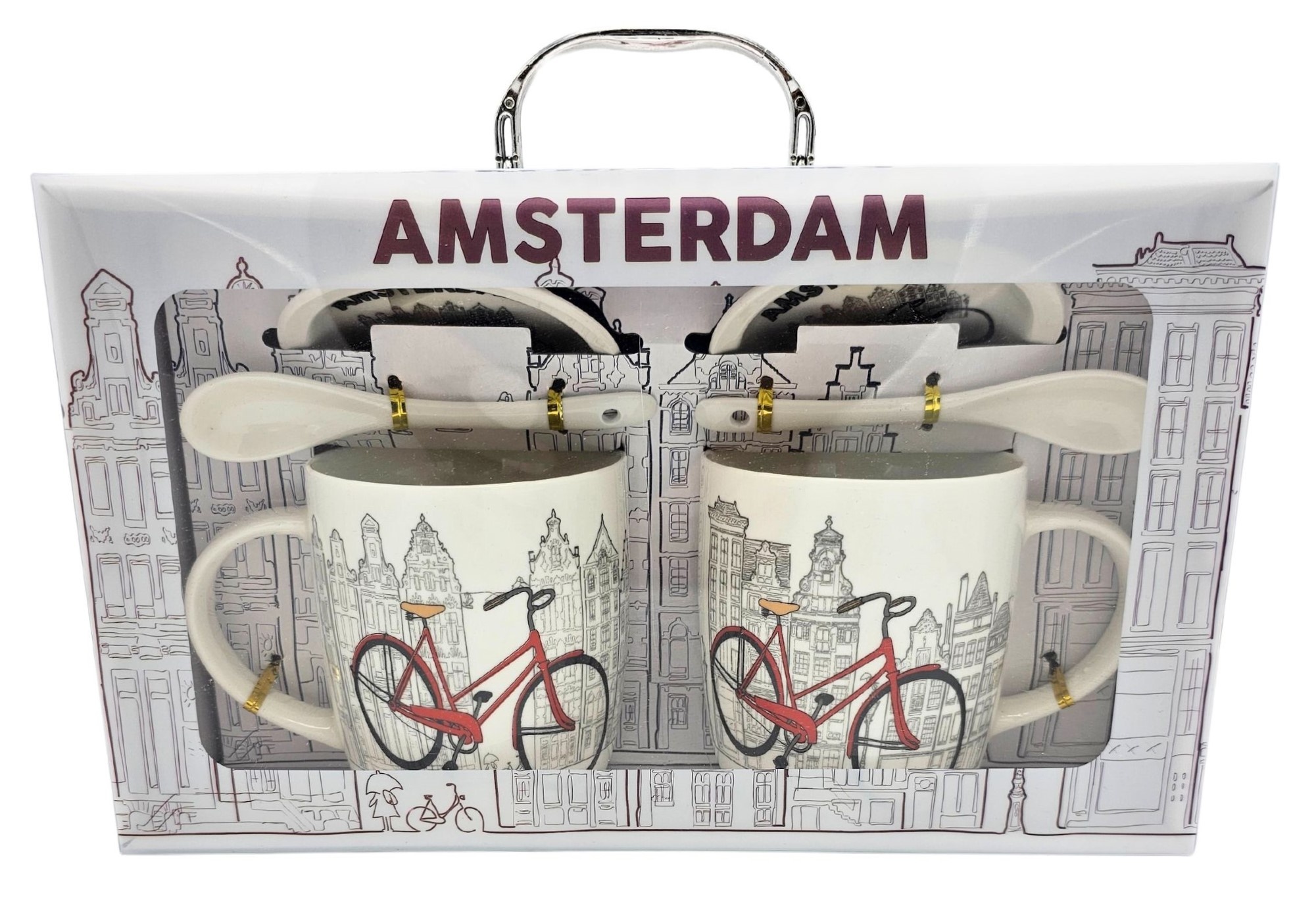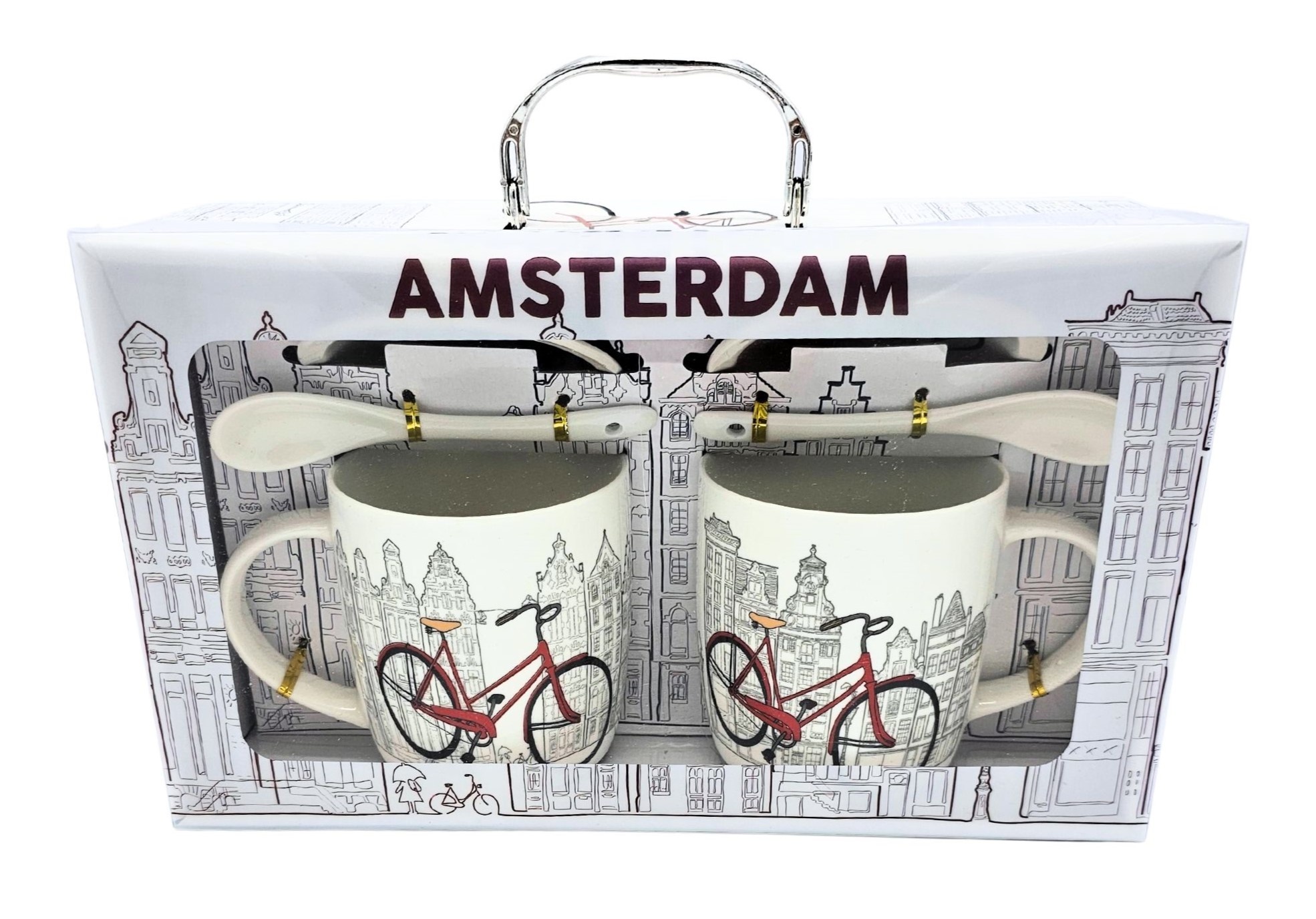Set aus 2 Tassen mit Untertassen (für Teebeutel oder Kekse) und Löffeln in einer schönen Geschenkbox