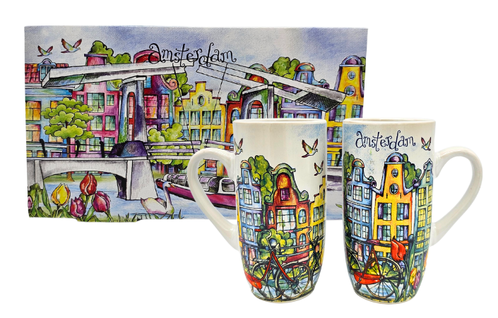 Schönes Set aus 2 hohen Tassen mit Henkeln.