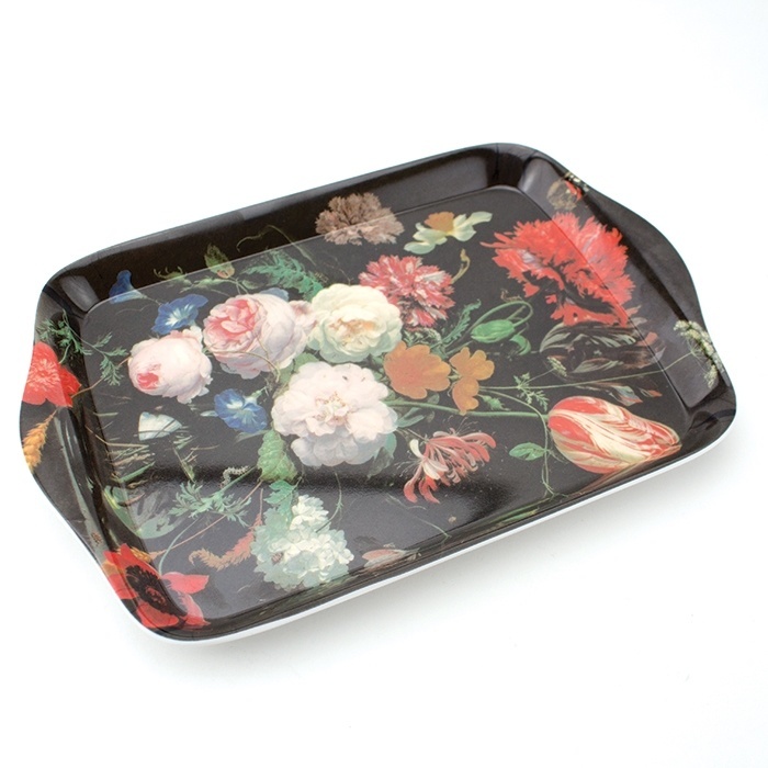 Ein schönes Tablett mit einem Blumenstrauß darauf,