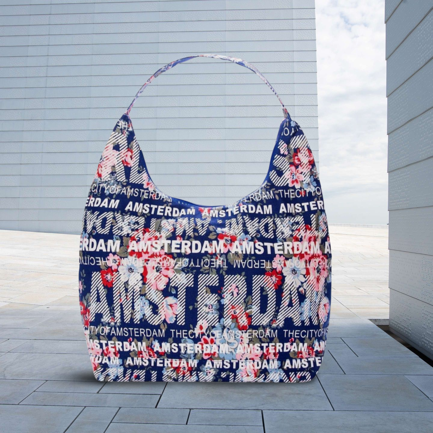 Große Umhängetasche Bag Amsterdam - Blau - Blumen