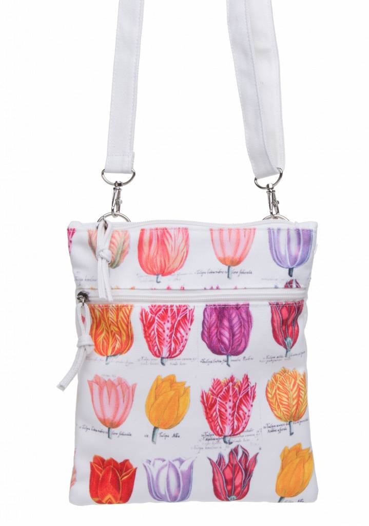 Umhängetasche - Reisepasstasche - Holland - Tulpen Diese Robin Ruth-Tasche verfügt über zwei Reißverschlussfächer und einen verstellbaren Tragegurt. Super geeignet während Ihrer Reise für Geld und Reisedokumente. •Material: Baumwolle. •Größe: 16 x 20 cm.