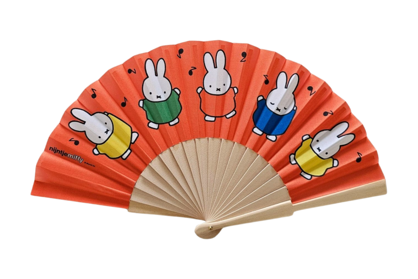 Handventilator - Miffy - Orange Ein schöner Handventilator, um die schlimmste Hitze zu vertreiben! Der Fächer ist nachhaltig aus Bambus gefertigt, mit einem Aufdruck von (Miffy tanzend)