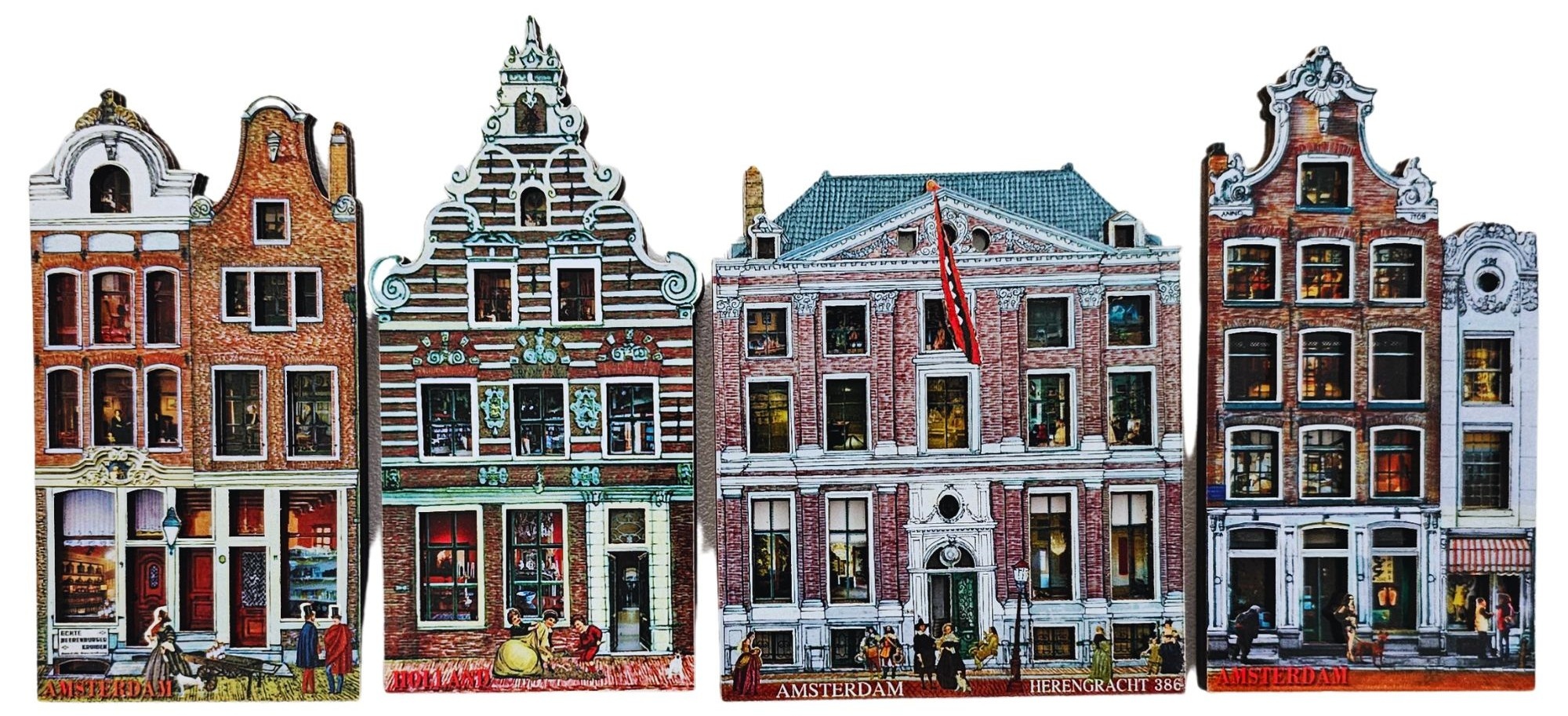 Diese Magnete bestehen aus MDF in 2D, zeigen ein Grachtenhausbild und haben alle eine Höhe von 10 cm.