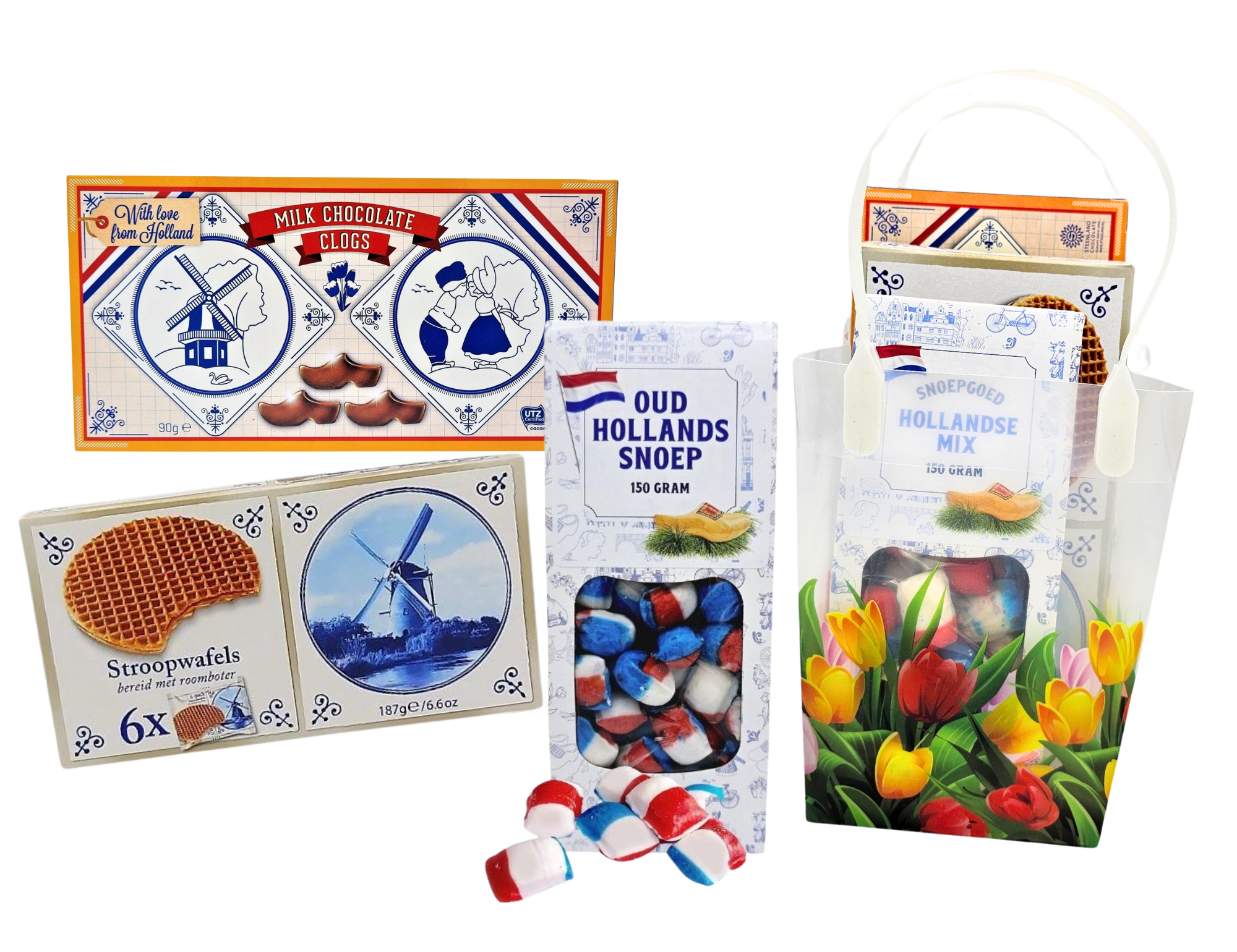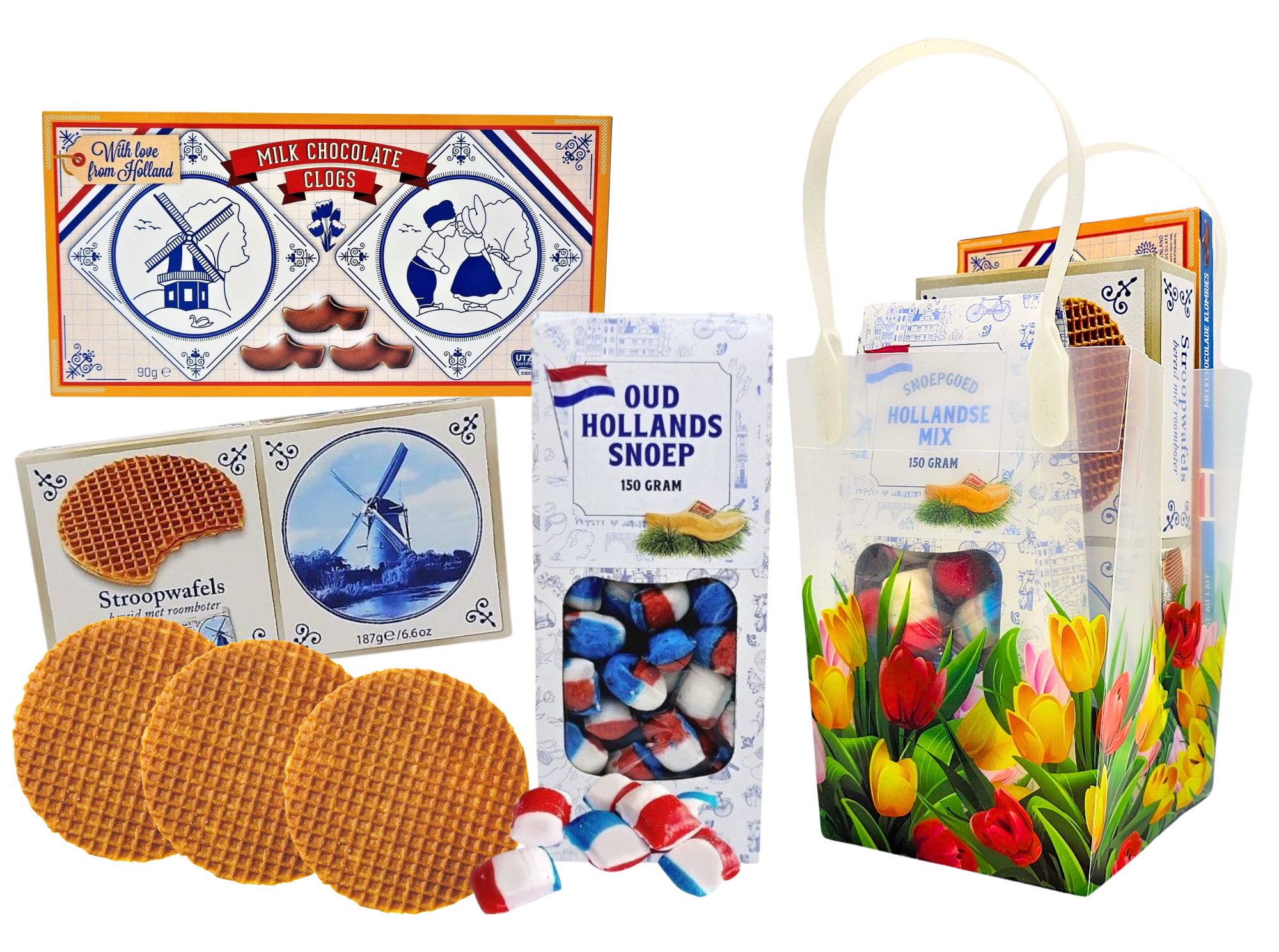 Holland PVC-Geschenktüte mit Tulpenmotiv – 3 Holland-Leckereien