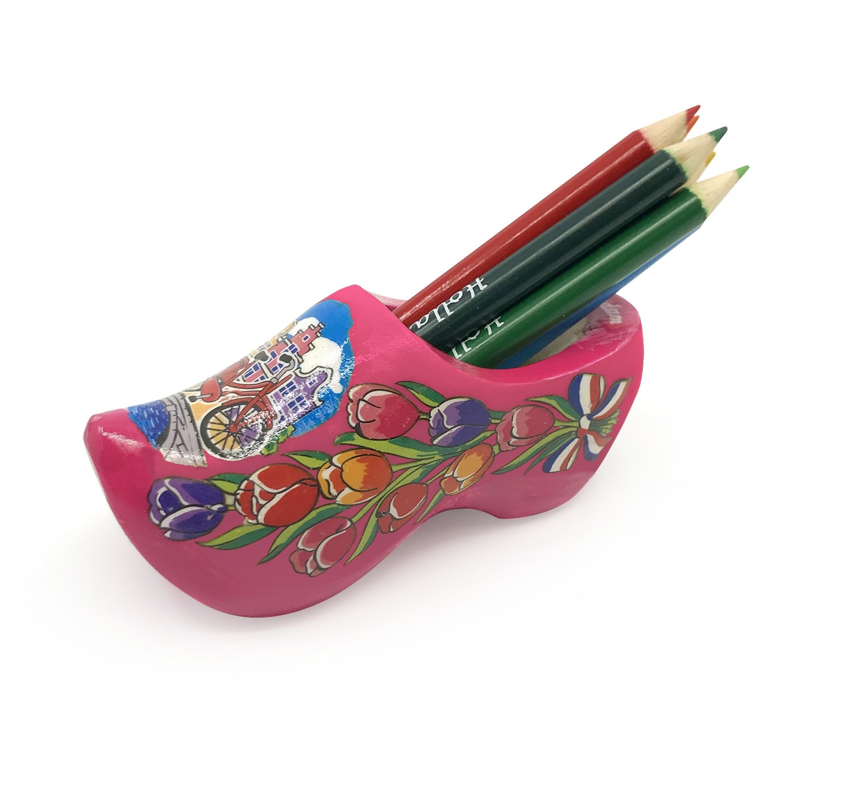 Clog-Anspitzer und Bleistifte – Rosa Der Clog enthält 7 Buntstifte und ist gleichzeitig ein Bleistiftanspitzer. Größe 10 cm. Wird in transparenter Verpackung geliefert.