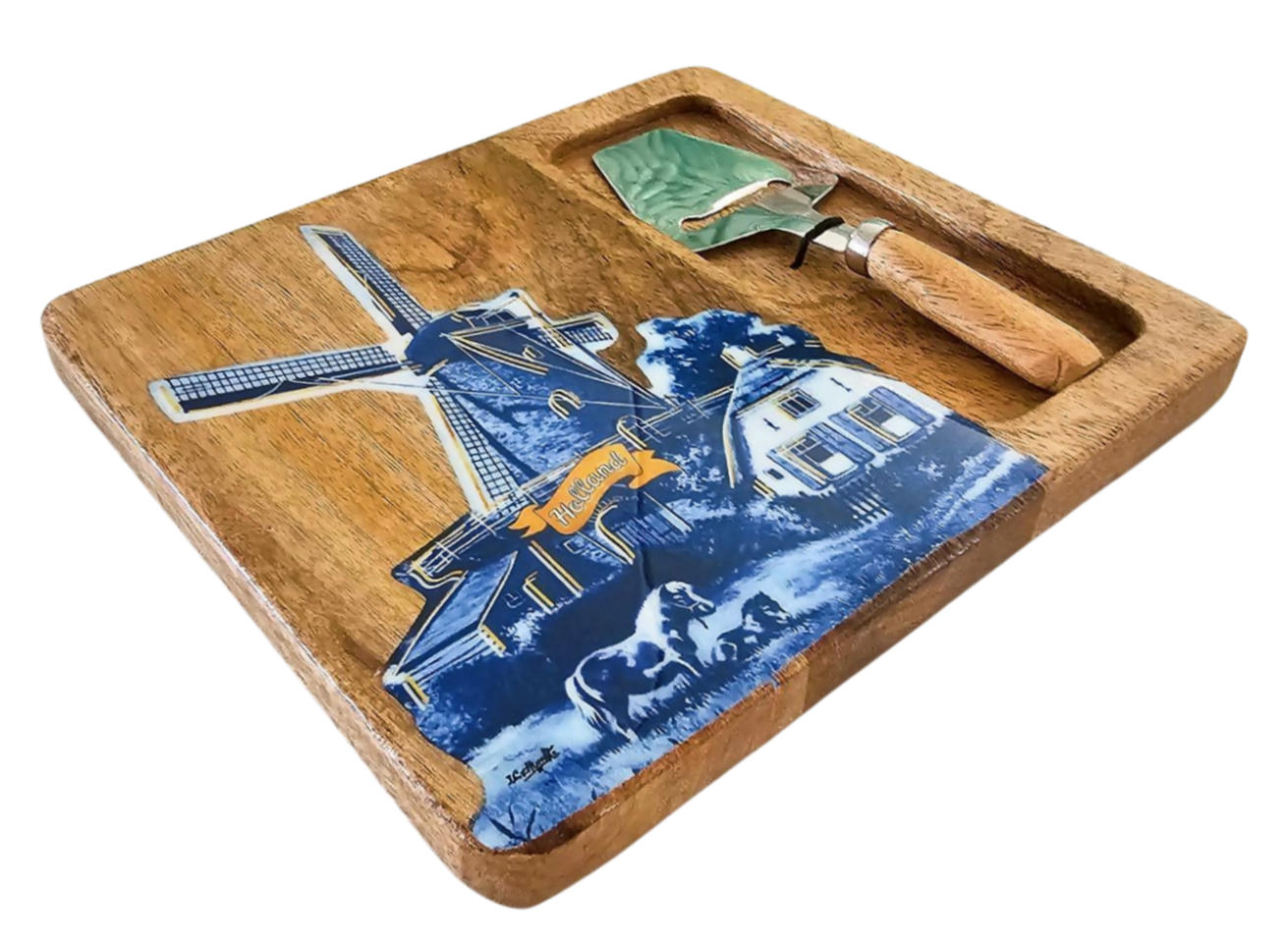 • Typisch Hollands Käsebrett mit Käsehobel - Holland Wood-Epoxy
