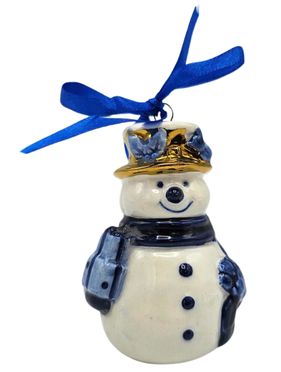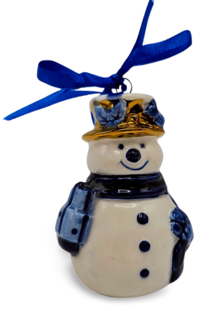 • Typisch Hollands Weihnachtsschmuck Schneemann Delfter Blau mit Gold