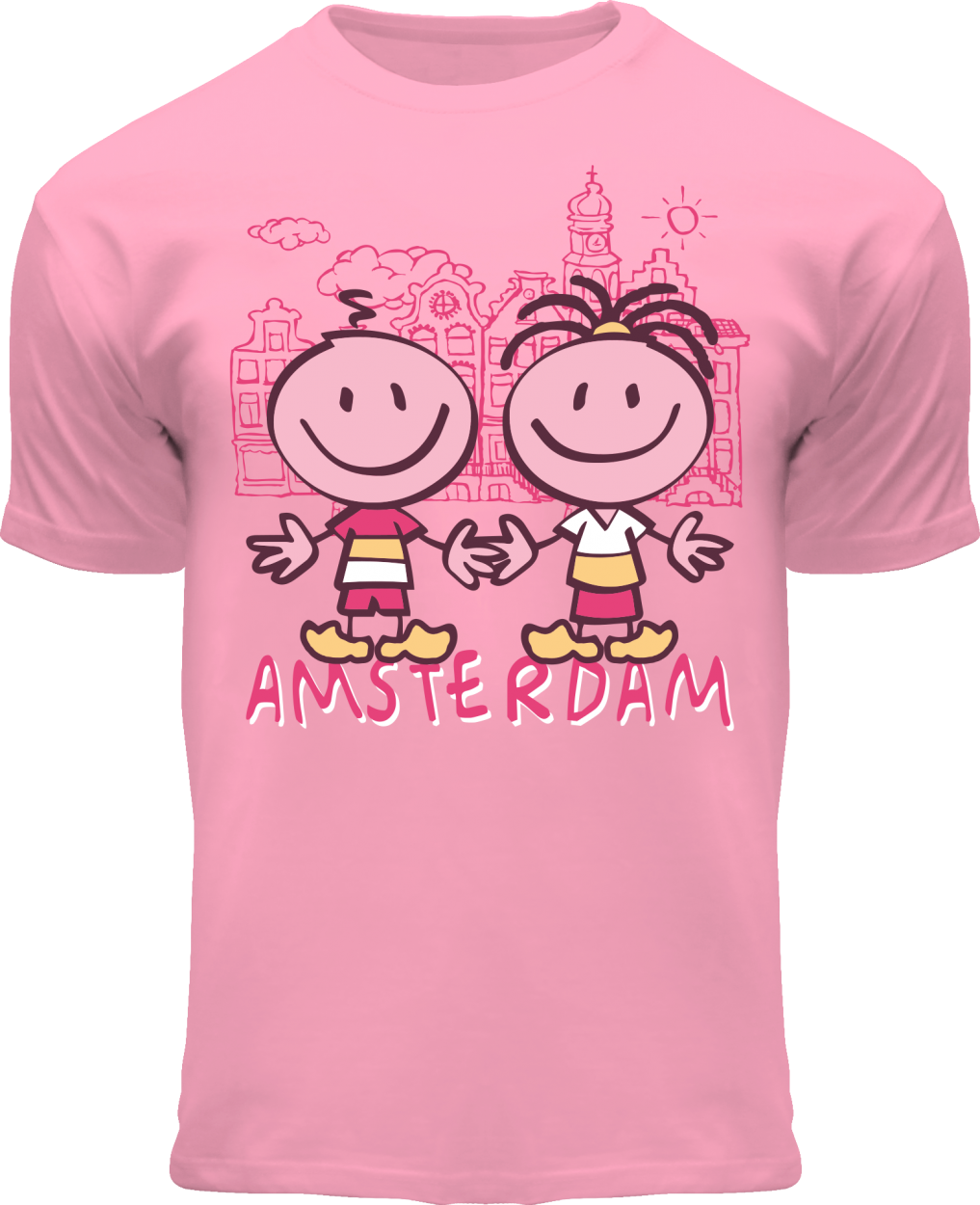 Lustiges Kindershirt.. Junge und Mädchen in Amsterdam (auf Clogs)