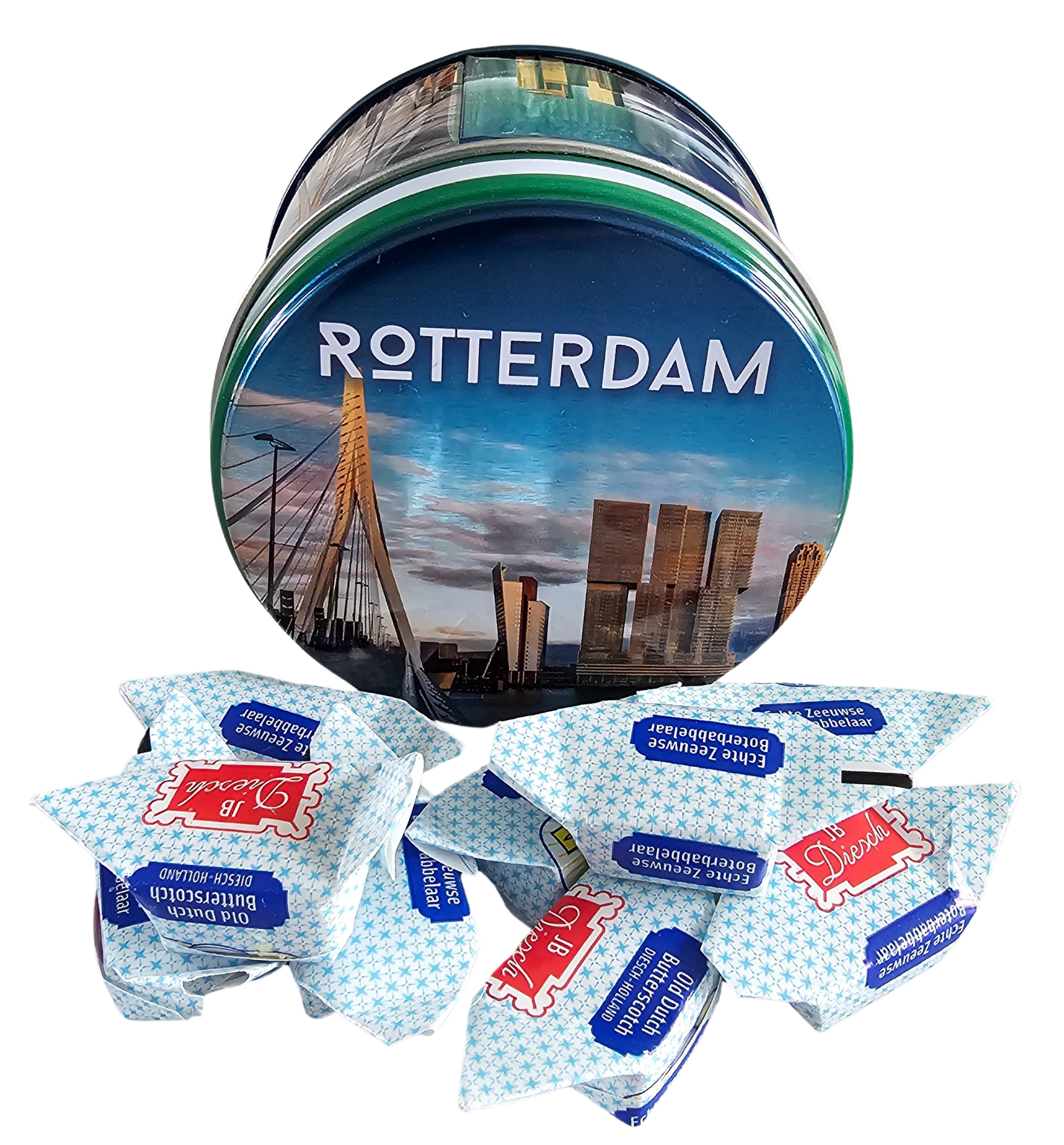 Eine super originelle Dose, die Sie natürlich einfach nachfüllen oder vielleicht auch zum Aufbewahren von Medikamenten während Ihrer Reisen und im Urlaub nutzen können. Bild: Skyline Rotterdam Abmessungen: 8 cm Inhalt: 100 Gramm Babbelaars Butter Candy