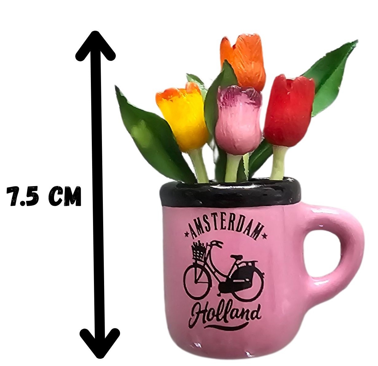 Magnet - Halbbecher mit Tulpen - Rosa - Fahrrad - Holland-Amsterdam