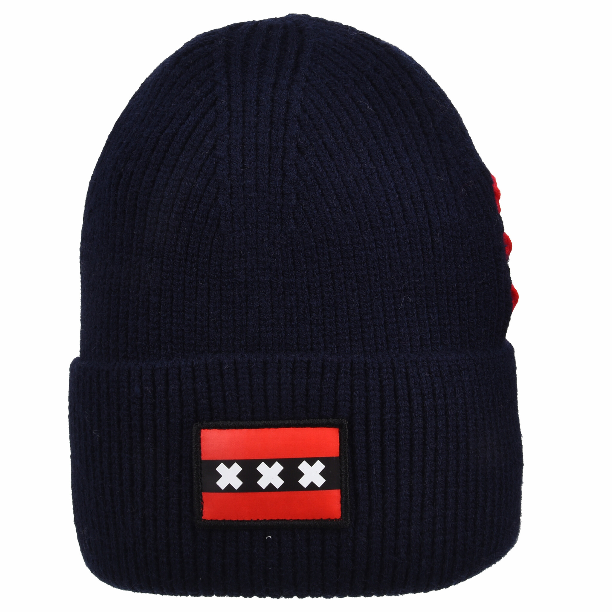 Die kurze Mütze Amsterdam Dunkelblau mit Amsterdam-Aufnäher besteht aus gestricktem Acryl und weist ein Zopfmuster auf. Spezifikationen: Klassische Mütze für Damen und Herren. Aus fein gestricktem Acryl