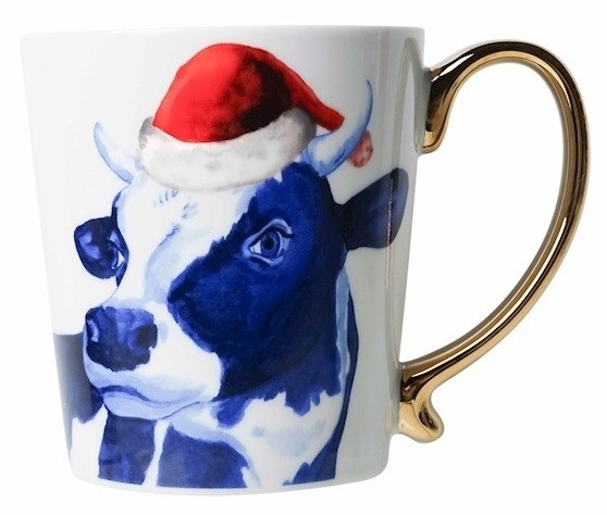 Niedliche Weihnachtstassen mit goldenem Henkel.