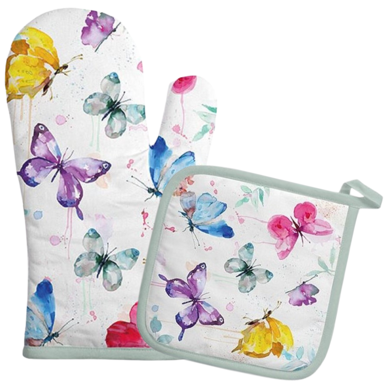 Dieses Set besteht aus einem Ofenhandschuh mit guter Passform und einem Topflappen.