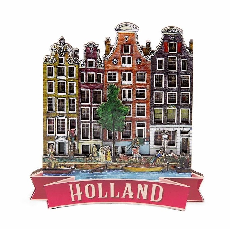 Magnet mit holländischer Häuserzeile,Bekannt aus den historischen Städten der Niederlande.Magnet aus MDF