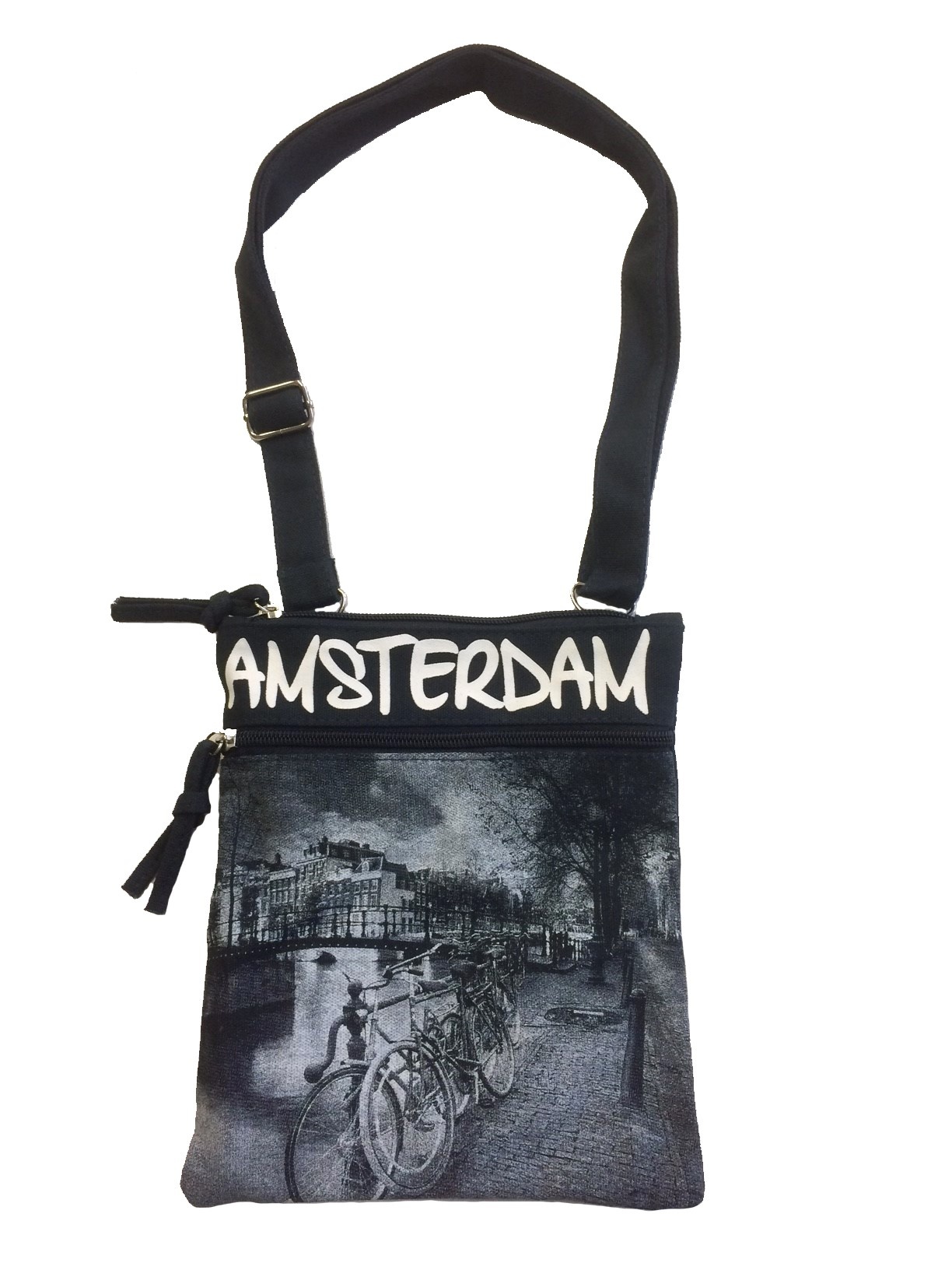 Umhängetasche - Reisepasstasche - Amsterdam Diese Robin Ruth-Tasche verfügt über zwei Reißverschlussfächer und einen verstellbaren Tragegurt. Super geeignet während Ihrer Reise für Geld und Reisedokumente. •Material: Baumwolle. •Größe: 16 x 20 cm. •Nettog