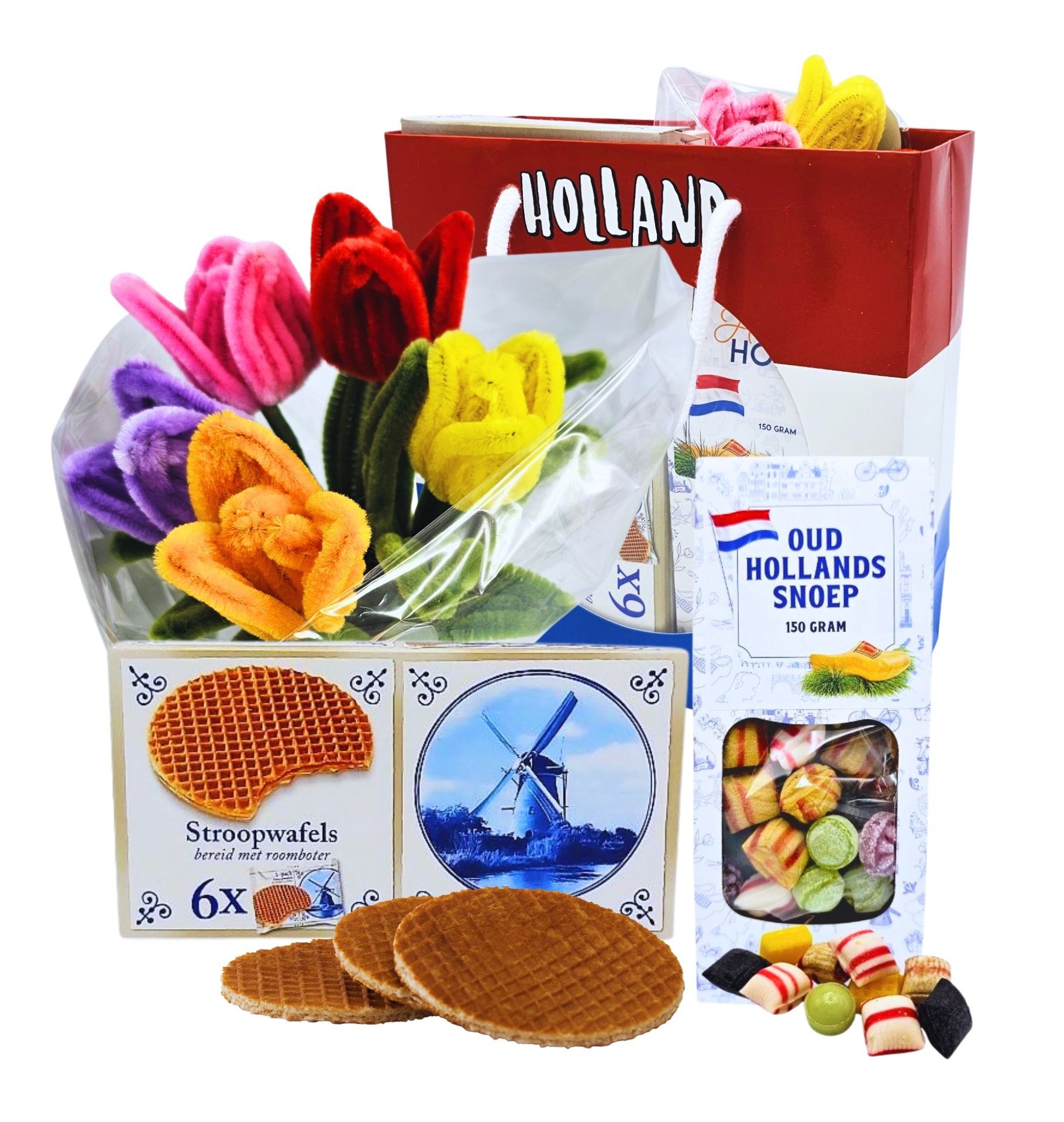 Diese bunte, holländische Fenstertüte ist mit Leckereien gefüllt.