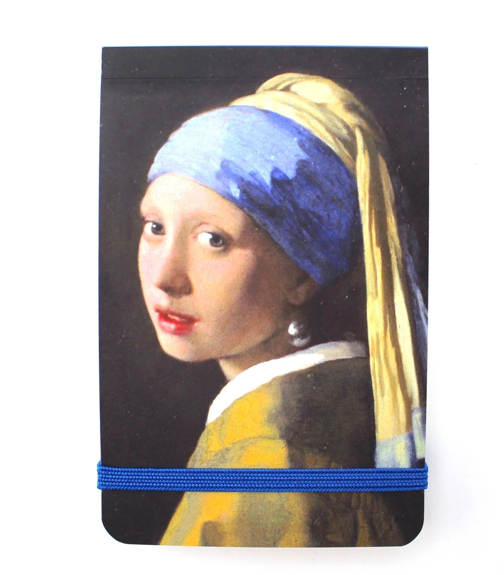 Taschennotizen sind sehr praktisch; Sie eignen sich perfekt, um eine kurze Notiz zu machen oder eine Liste zu führen. Diese Taschennotizen sind mit einem wunderschönen Aufdruck von Johannes Vermeers Meisterwerk „Das Mädchen mit dem Perlenohrring“ versehen.