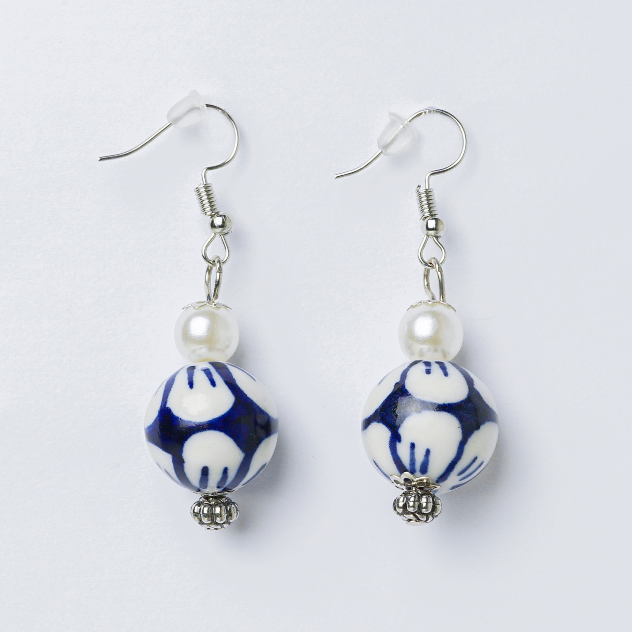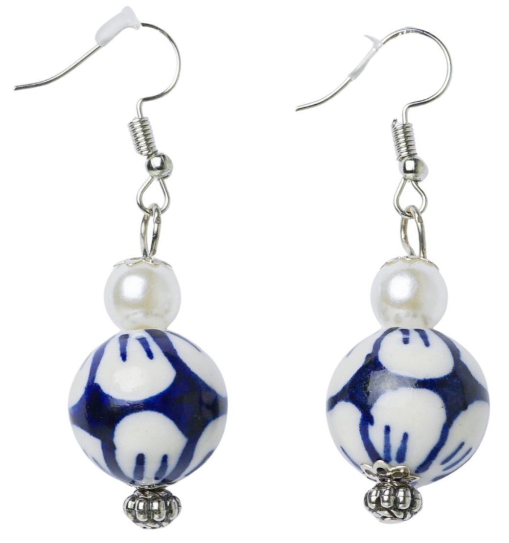 Delfter blaue Ohrringe mit Handbemalung und einer weißen perlenförmigen Perle