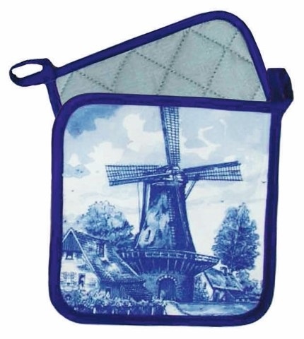 Topflappen Windmühle - Delft • Super schöne Qualität. •Motiv: Tulpendruck •Farbe: Delfter Blau •Verpackt zu 2 Stück in einer Blisterpackung •Größe 19 x19 cm Typisch holländische Küchentextilien