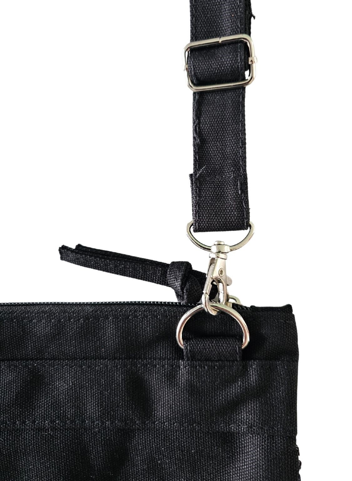 Reisepasstasche - Halstasche - Schwarz mit botanischem Tulpendruck. Diese Tasche hat zwei Fächer mit Reißverschluss und verstellbarem Tragegurt. Sehr gut geeignet für Geld und Reisedokumente während Ihrer Reise. •Material: Baumwolle. • Abmessungen: 16 x 2