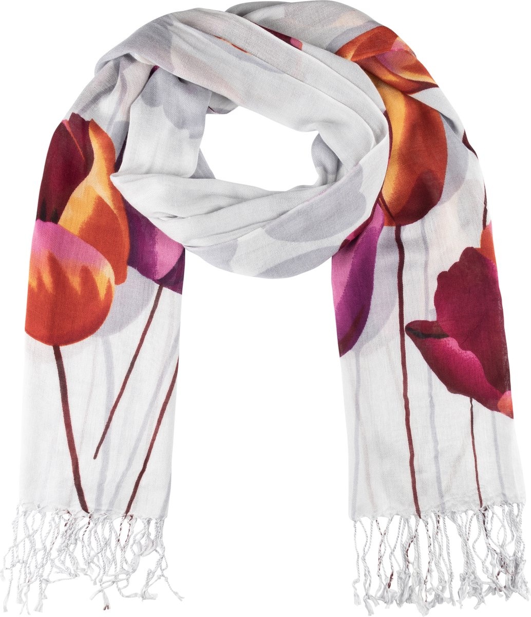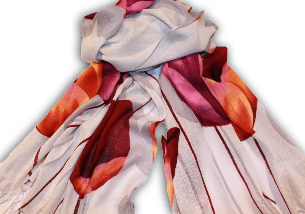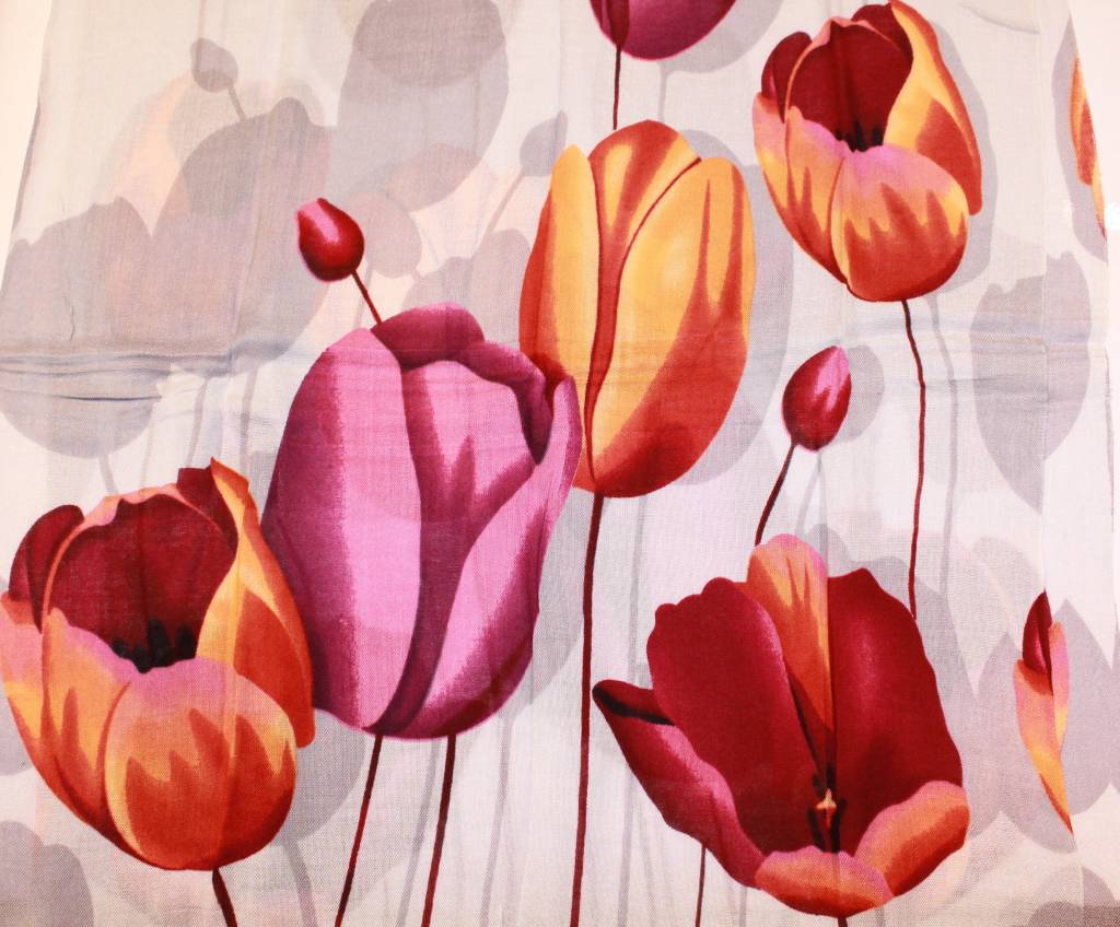 Wunderschöner Tulpendruck. Graues Burgunderrot - Orange