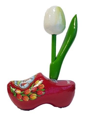 • Typisch Hollands  Souvenir-Clog – Rot mit weißer Tulpe. 8 cm