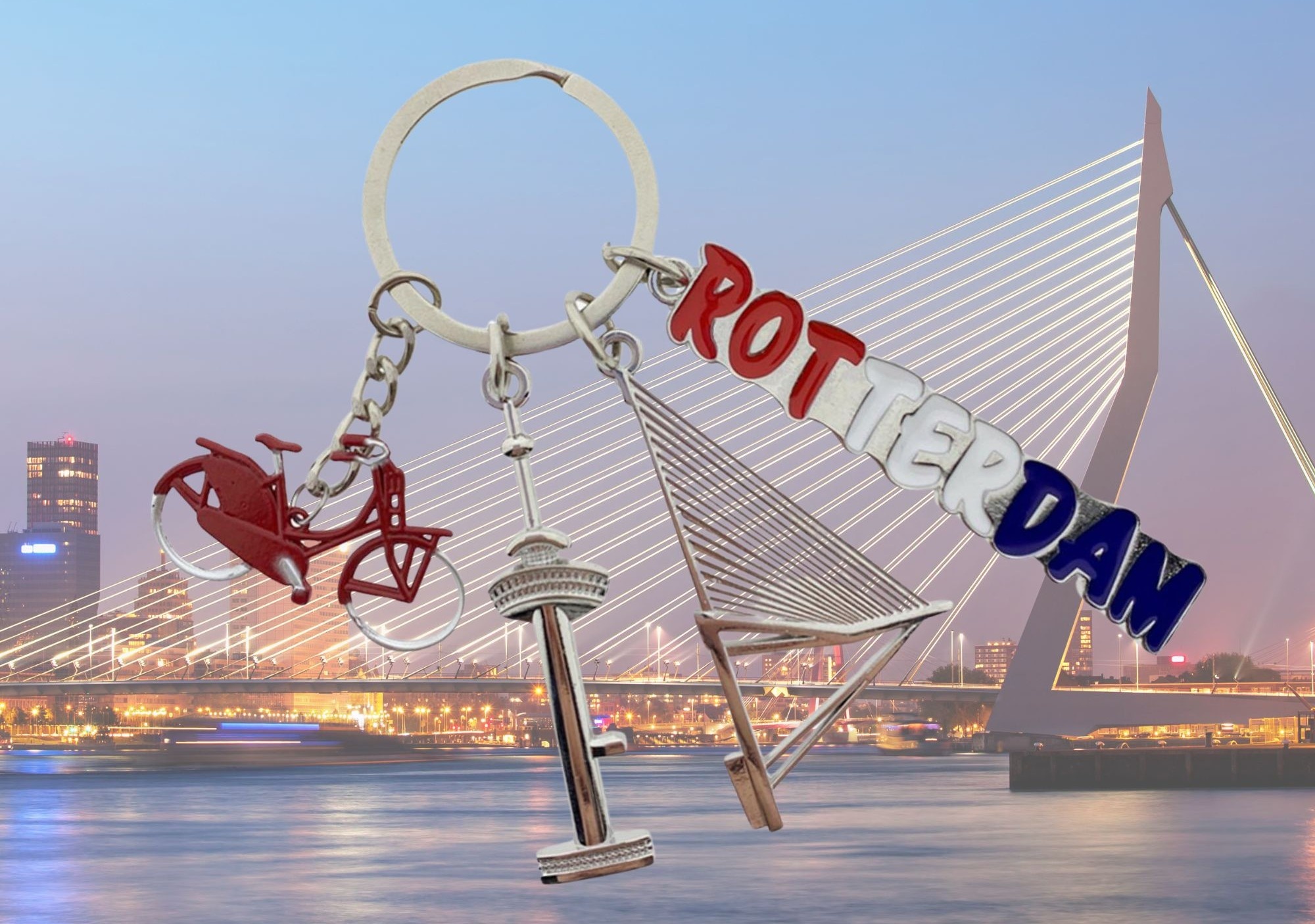 Schlüsselanhänger mit 4 Anhängern Rotterdam Super cool! in glänzender Silberfarbe gefertigt Jeder echte Rotterdamer hat einen Schlüsselanhänger seiner eigenen Stadt!