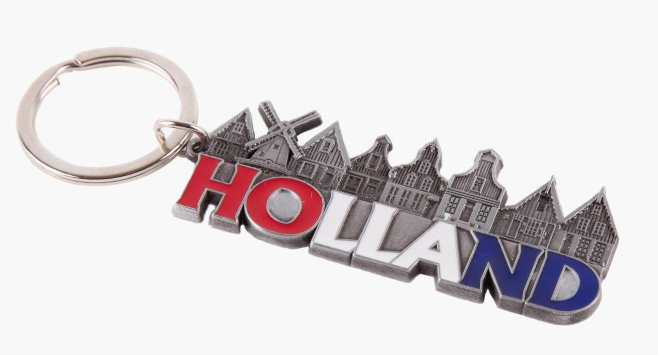 Holland in Buchstaben in den niederländischen Farben Rot, Weiß und Blau (auf Blech),