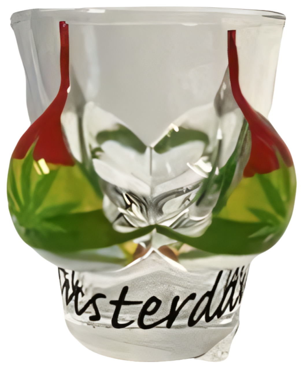 Schnapsglas-Bikinioberteil – Damen – Cannabis – Rasta Originales Schnapsglas für den Sammler oder einfach zum Trinken eines Schnapses. Abmessungen: 6,5 x 4,5 cm Text: Amsterdam