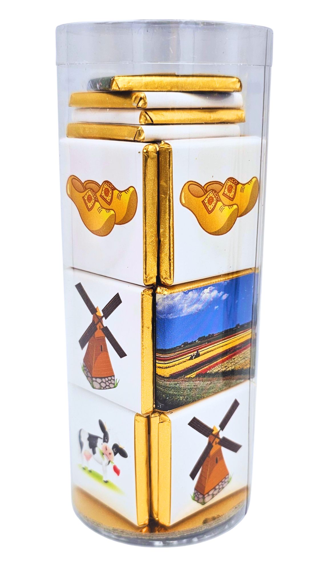 • Lustige niederländische Bilder : Jede Schokolade zeigt ikonische und lustige niederländische Bilder, die dem Empfänger garantiert ein Lächeln ins Gesicht zaubern.