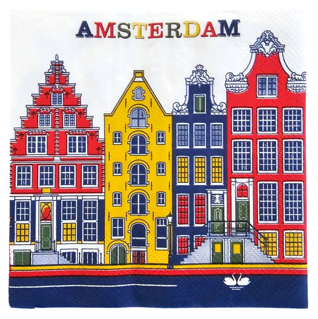 • Typisch Hollands Servietten Grachtenhäuser Farbe - Amsterdam