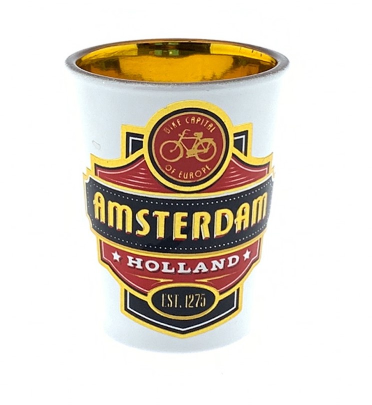 Schnapsglas Amsterdam rot/gold