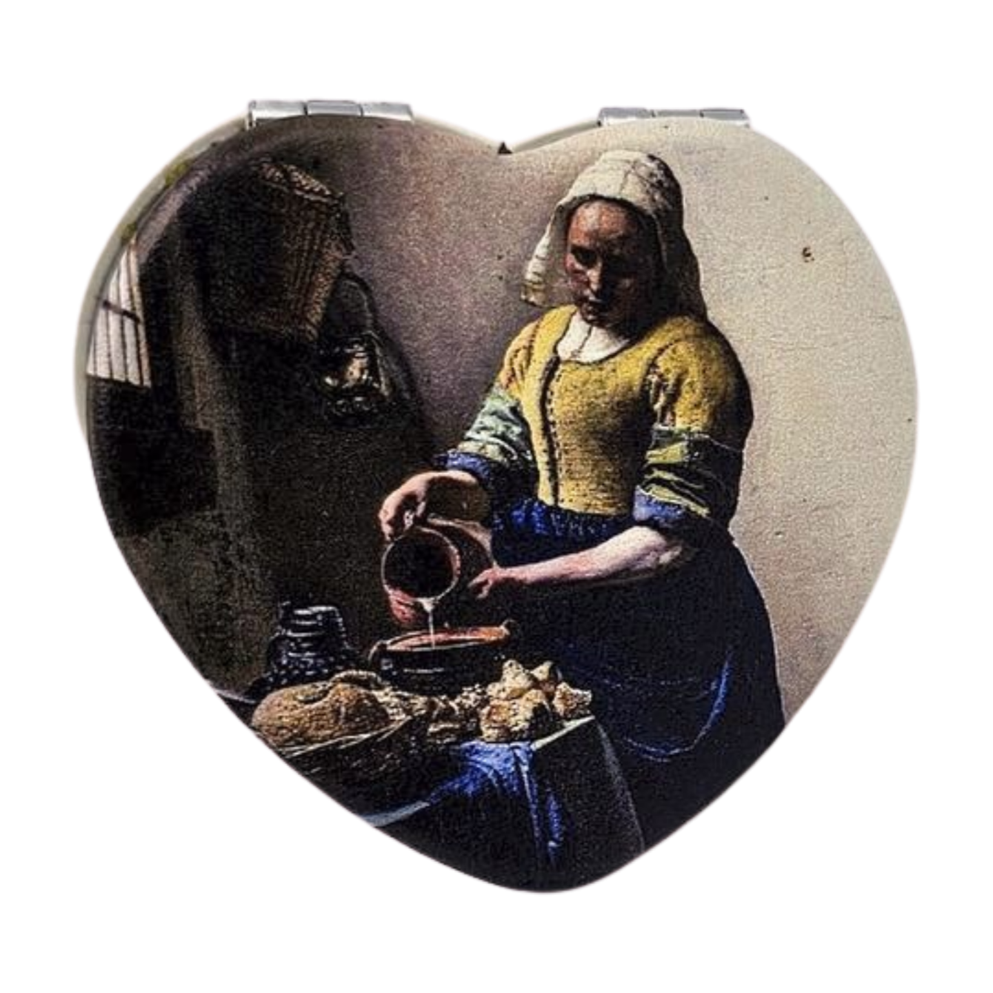 Spiegelbox - die Milchmagd Herzförmiger Duo-Spiegel | Spiegelbox mit Magnetverschluss. Ausgestattet mit einem normalen und einem Vergrößerungsspiegel. Maße: 6x6 cm