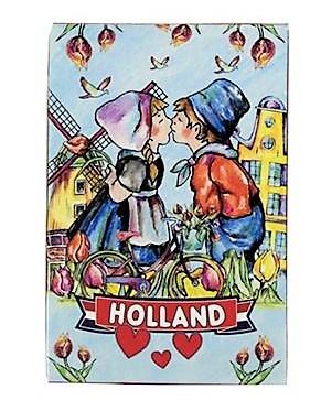 Spielkarten Holland Kiss Couple 54 Stück niederländische Spielkarten. in Vollfarbe bedruckt mit Windmühlenhäusern, küssendem Paar und Fahrrad