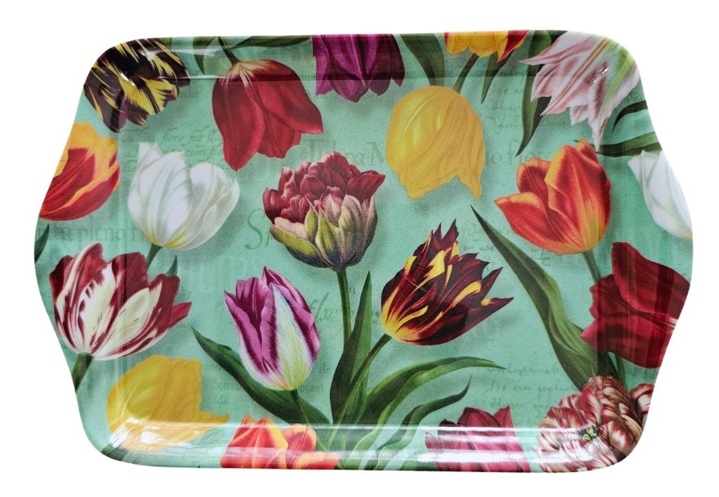 Verziert mit einem wunderschönen Tulpendekor auf grünem Hintergrund.