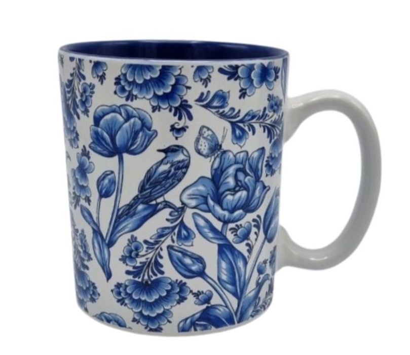 Mit wunderschönem Aufdruck Vögel und Tulpen Delfter Blau