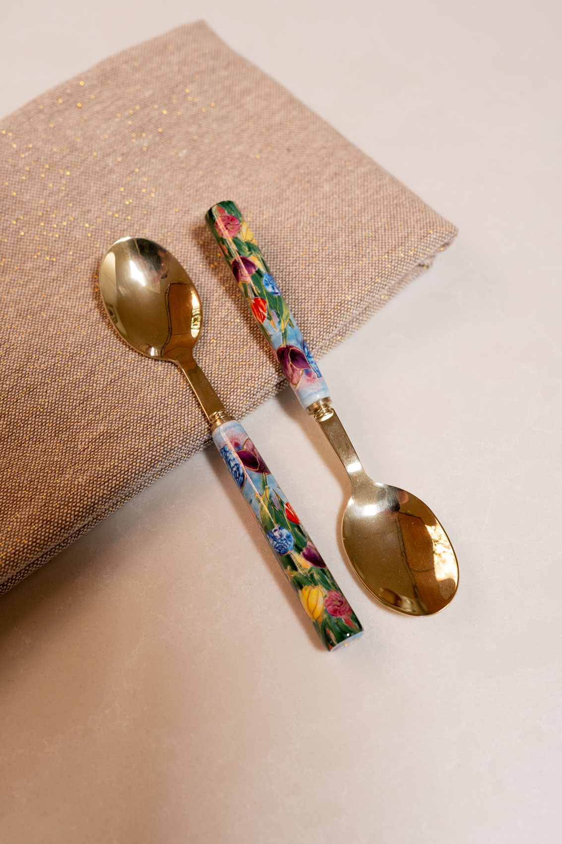 Das Set besteht aus zwei Teelöffeln, die stilvoll in einer kompakten Geschenkbox verpackt sind – perfekt als Geschenk oder als farbenfrohe Ergänzung zu Ihrem eigenen Geschirr.