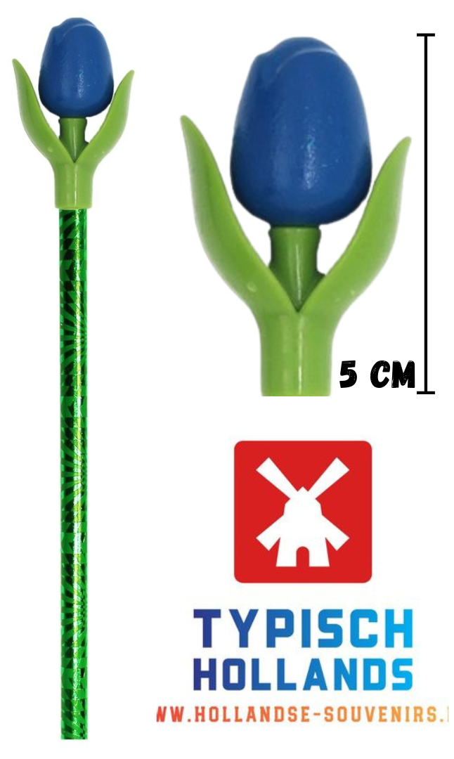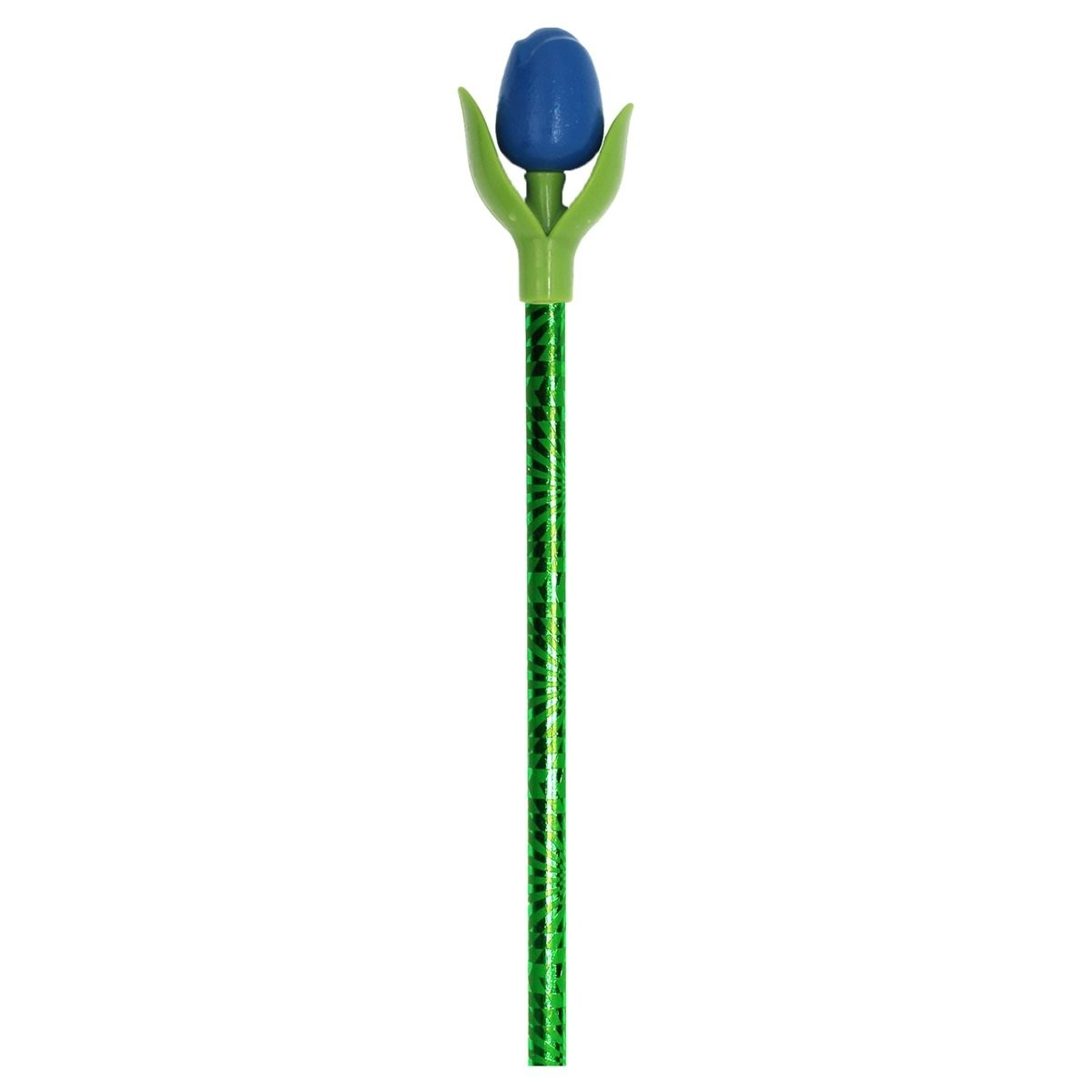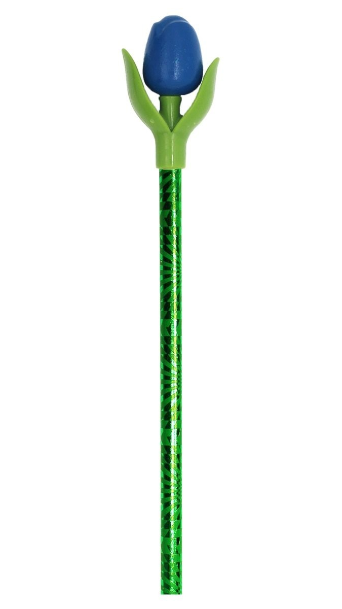 Der Bleistift hat die Form einer Tulpe mit zwei detaillierten Blättern.
