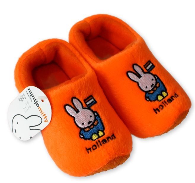 Diese fröhlichen Hausschuhe vereinen die Nationalfarbe der Niederlande mit der weltberühmten Figur von Dick Bruna.